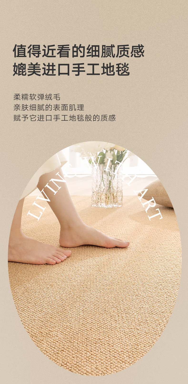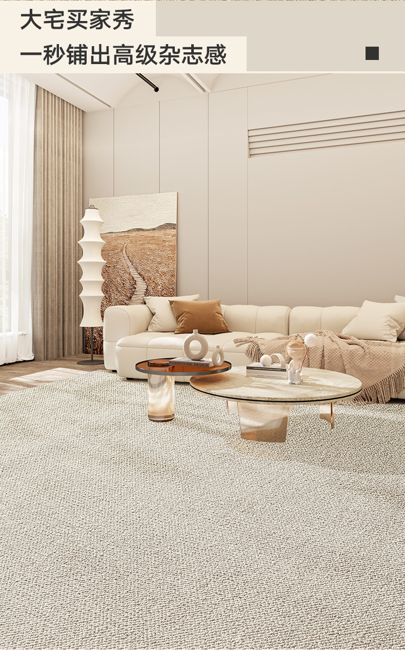 奶油风客厅免洗地毯沙发垫易打理可擦地垫卧室轻奢防水舒适脚垫
