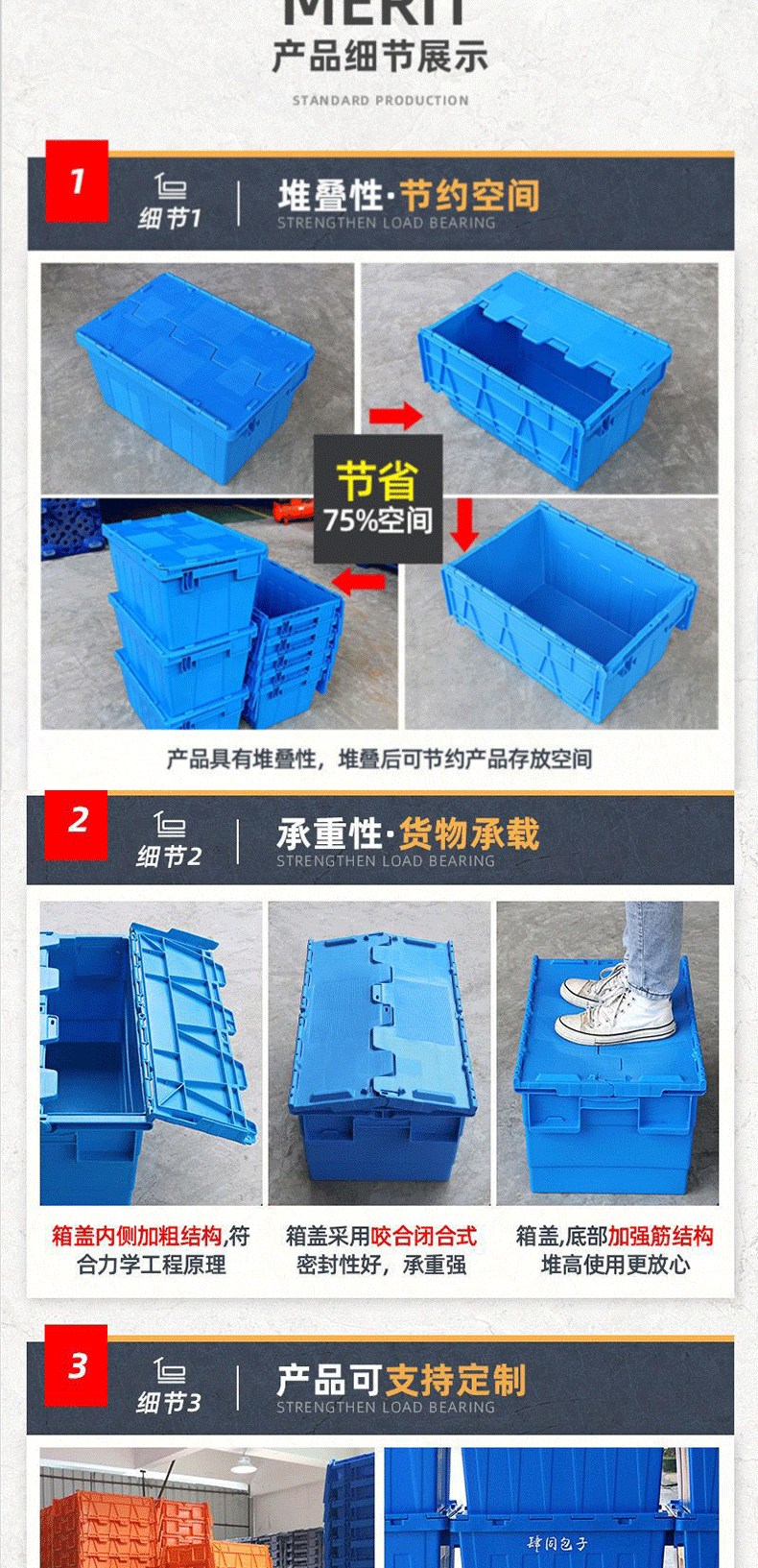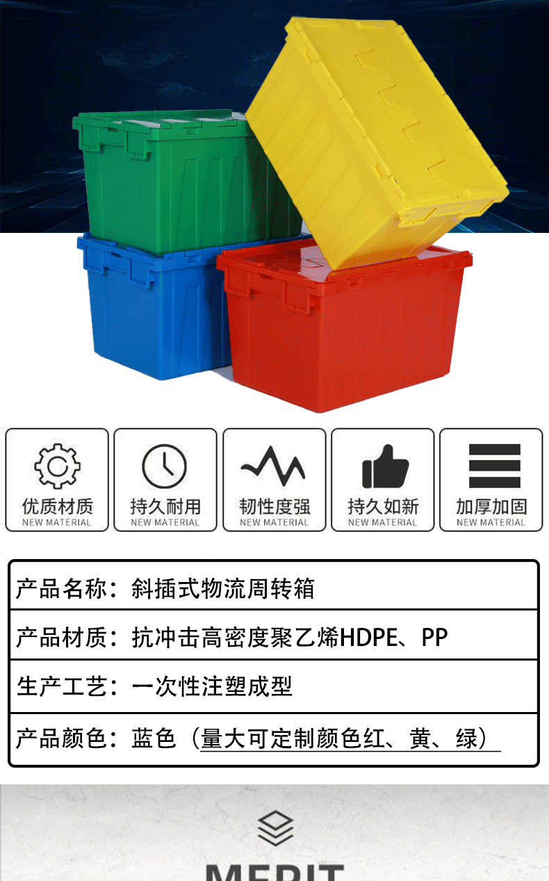 プラスチックの回転箱の生産卸売りの青い蓋付きの貨物箱の大きいサイズのゴム枠の倉庫の金属の材料箱の厚いプラスチック箱