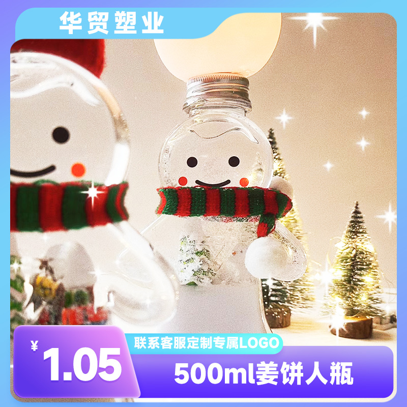 500ml ジンジャーブレッドマンミルクティーボトル、透明な漫画ジュースドリンクボトル、使い捨て食品グレードのテイクアウトプラスチックボトル
