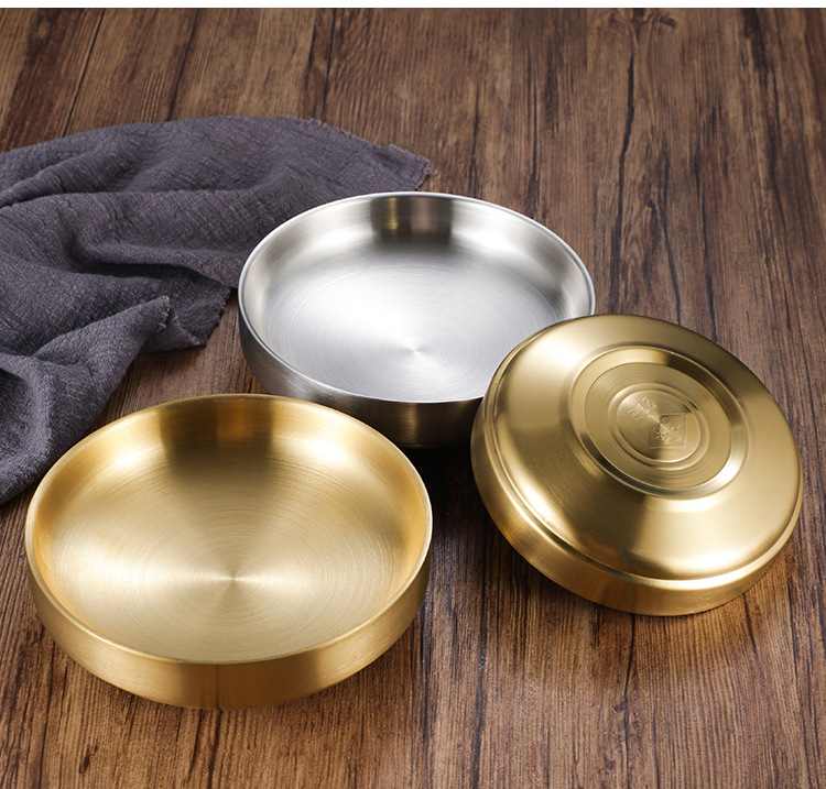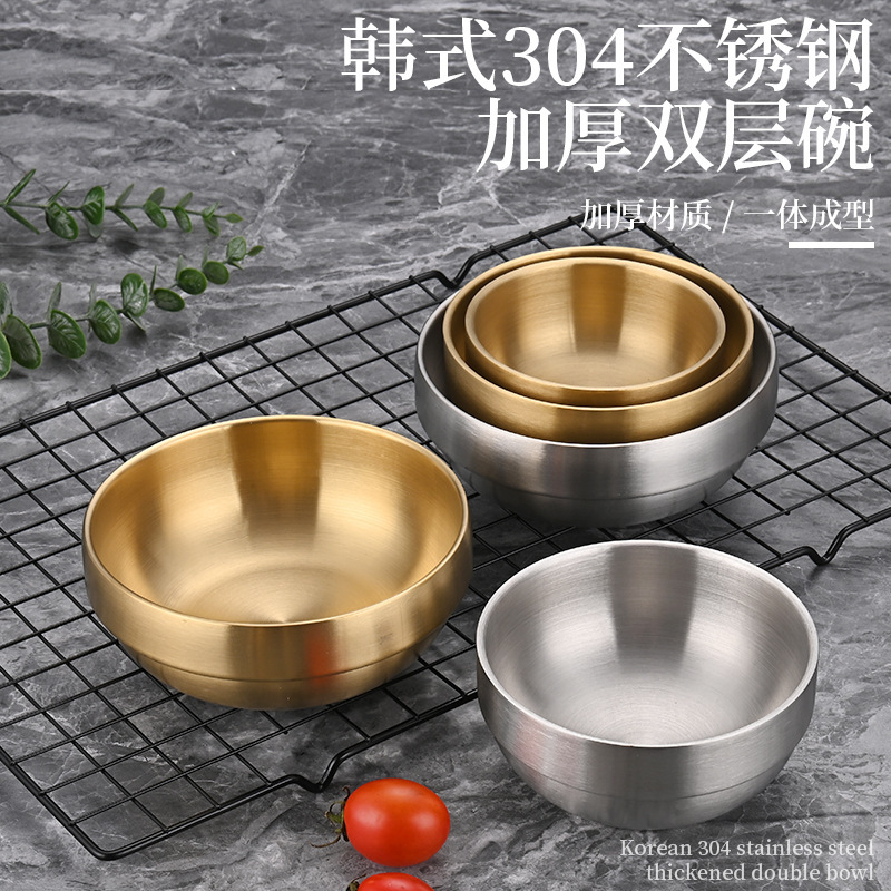 304ステンレスのご飯の碗の家庭用の二重の子供のスープの碗の韓国式の料理のキムチの碗の金色の冷麺の碗は注文して作ります。