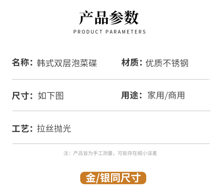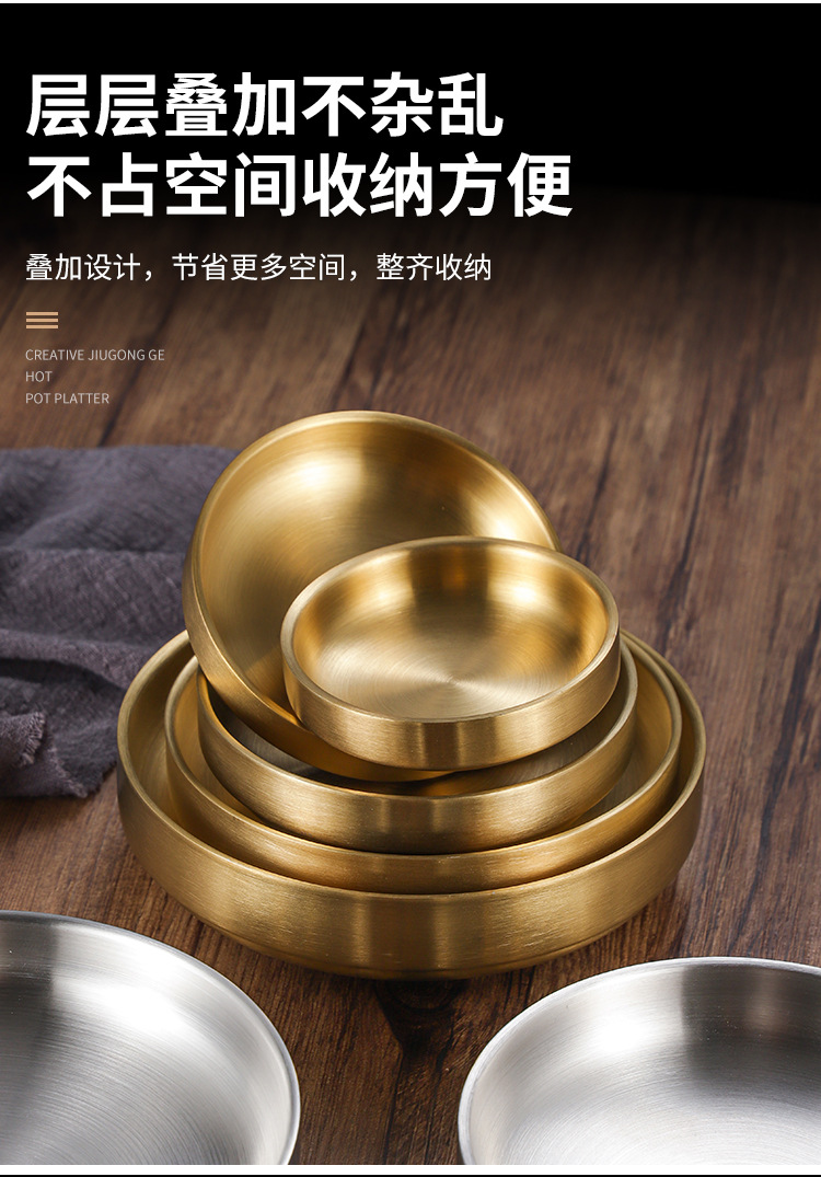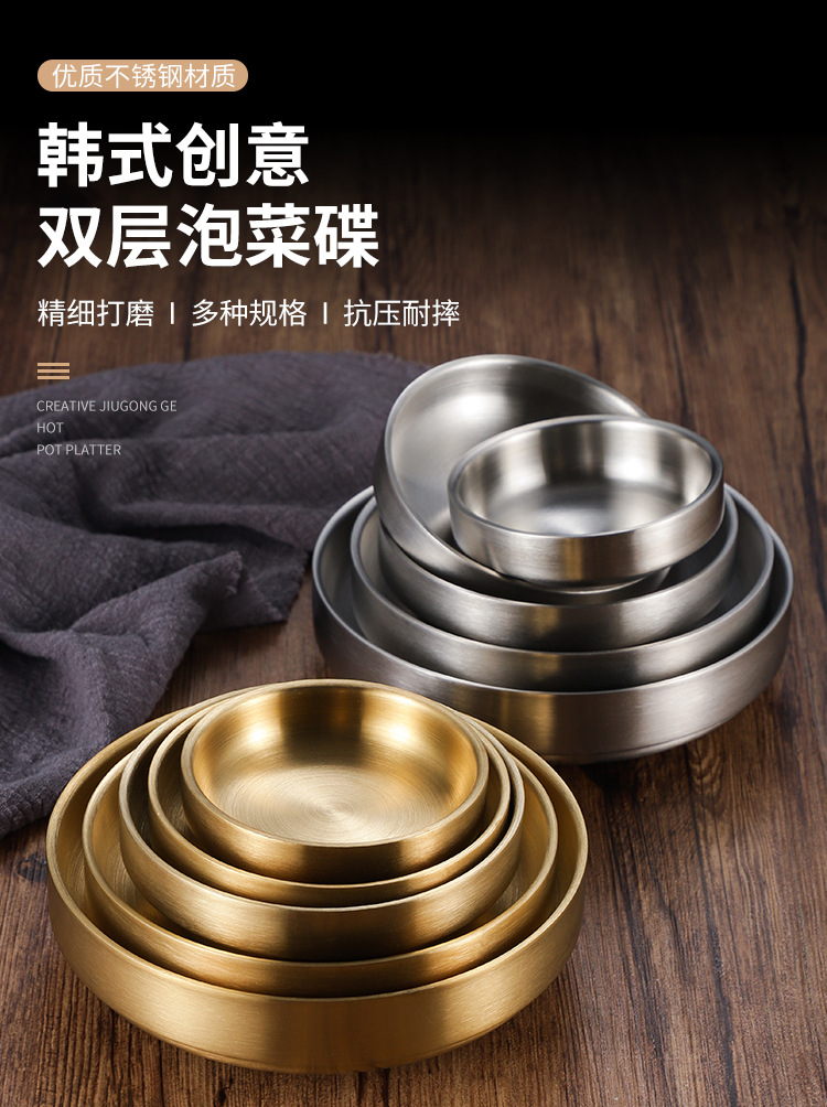 韓国式二重ステンレス皿キムチ皿調味料皿厚肉料理小鉢おかず皿