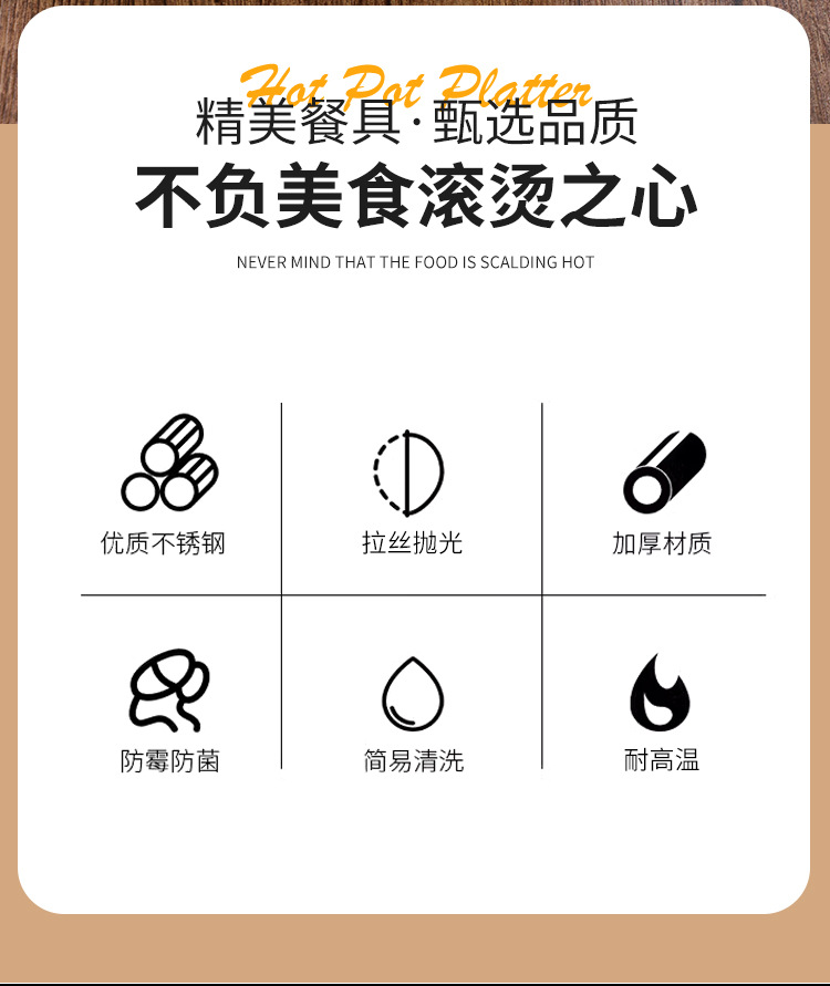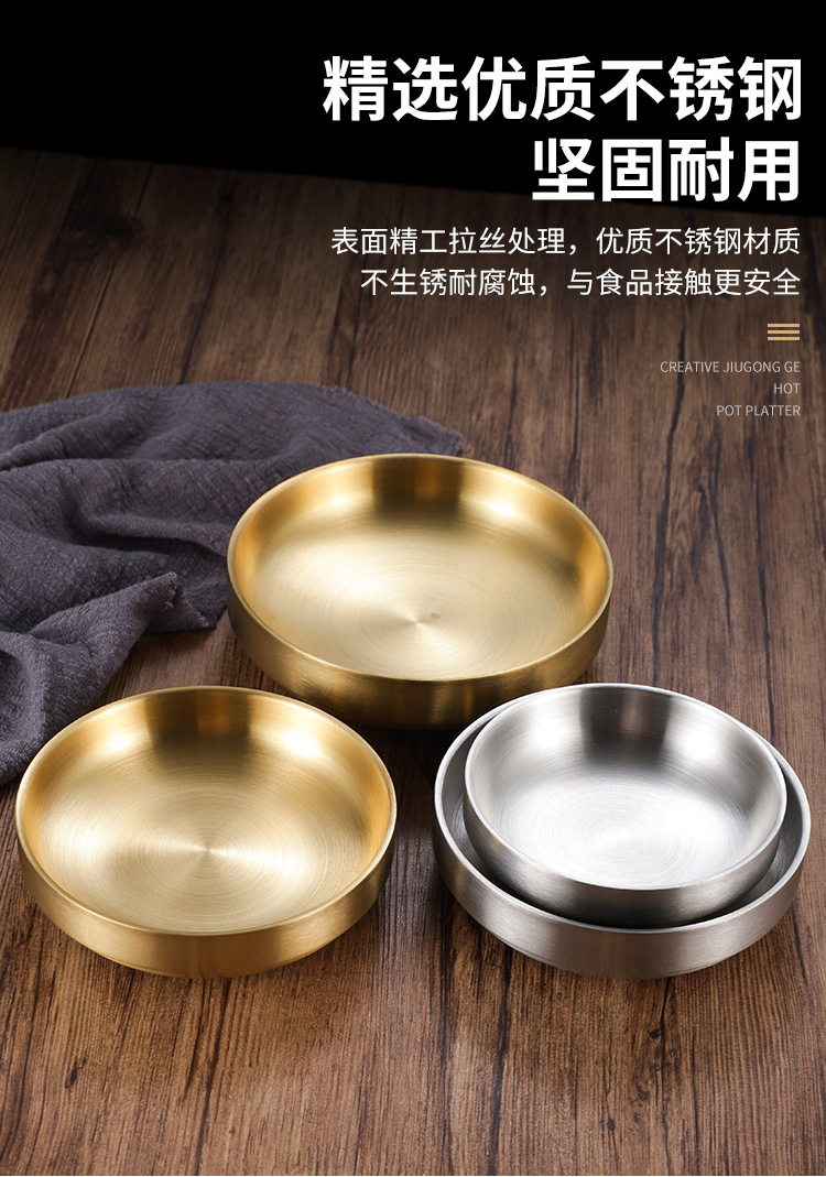 304ステンレスの韓国式二重キムチ皿料理店は皿のおかず皿の冷たい料理皿の商用調味料皿を厚くします。