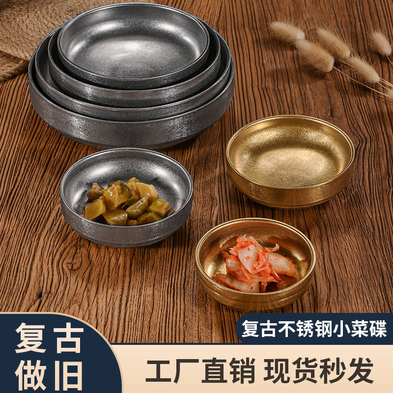 復古風ステンレス皿日本式旧軽食皿キムチ味皿ソース皿浅皿クリエイティブ料理皿デザート