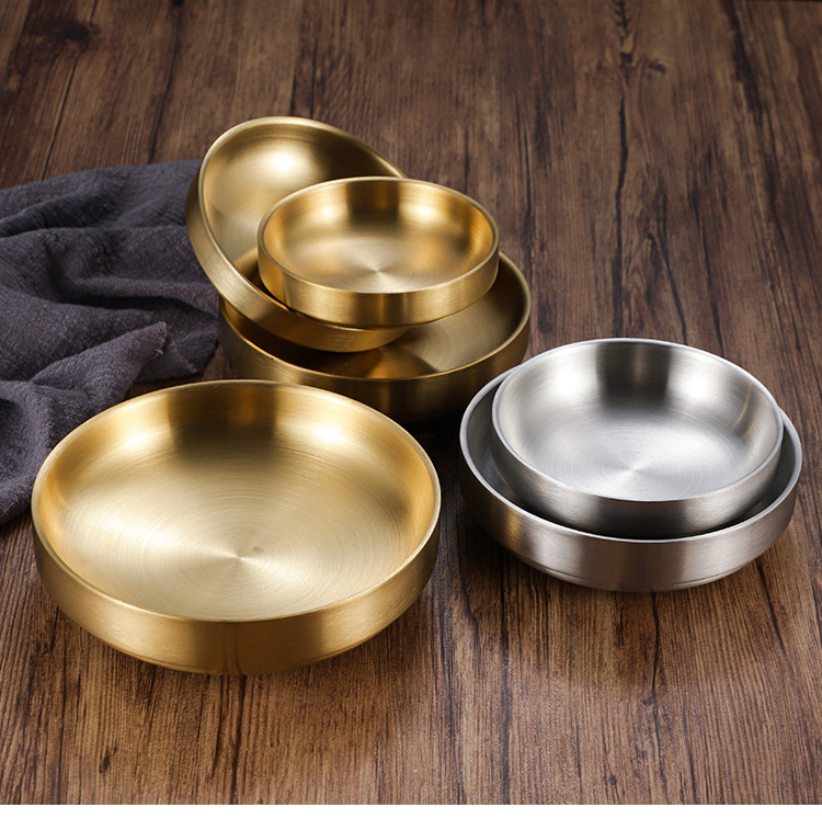 ステンレス製のボウル、ご飯茶碗、韓国風金色の二層スープボウル、キムチボウル、料理用小鉢、子供用ボウル、韓国風食器