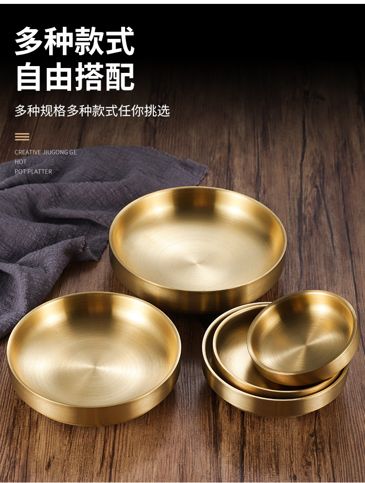 韓国式304ステンレスソース皿おかず皿韓国金色キムチ皿焼肉ソース皿調味皿食器