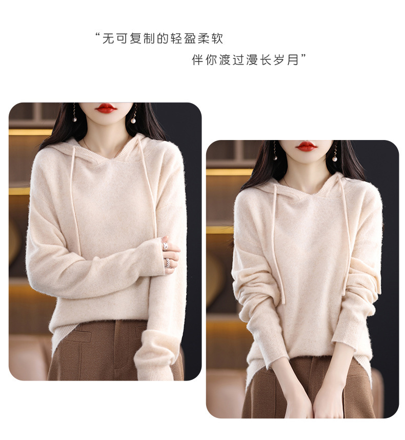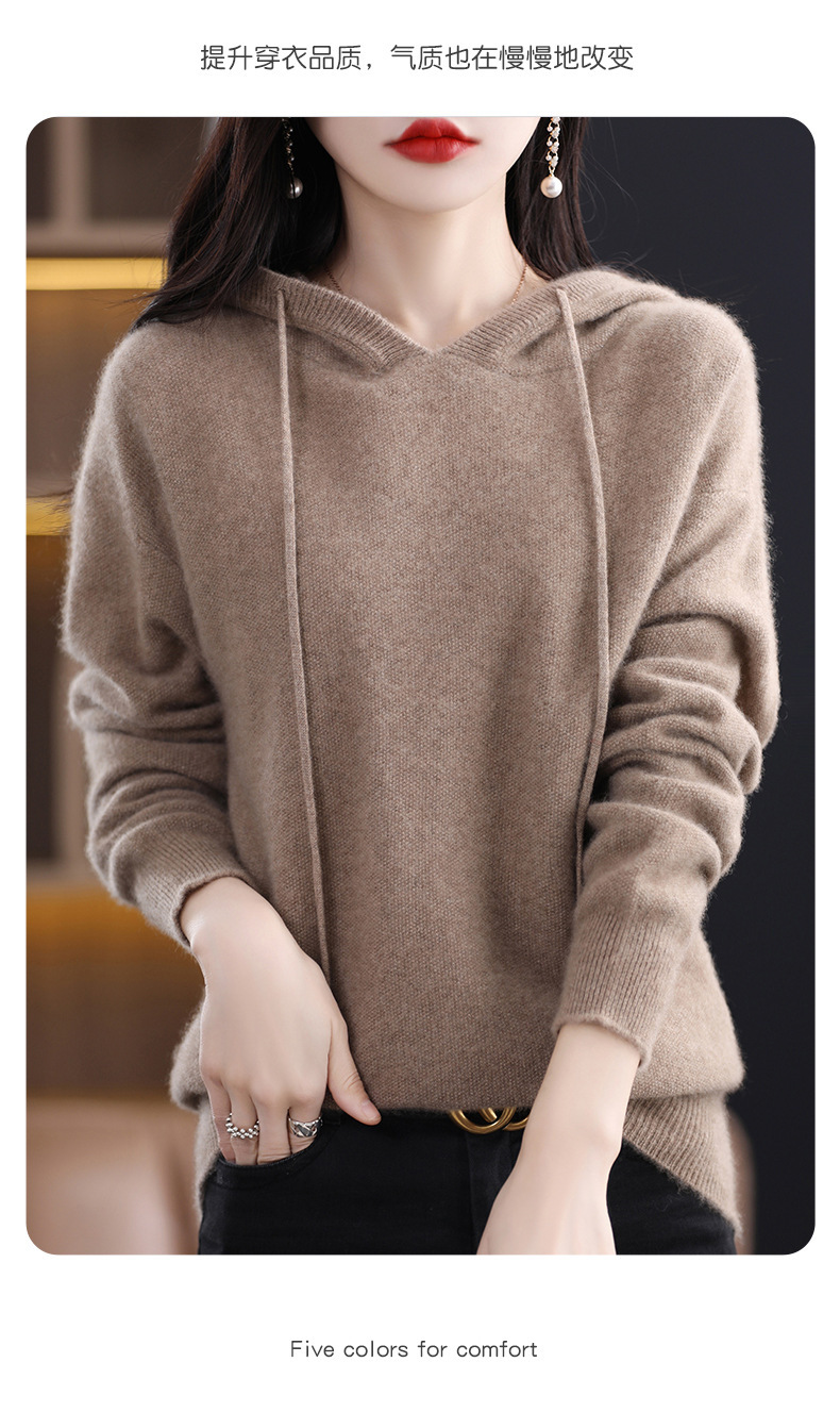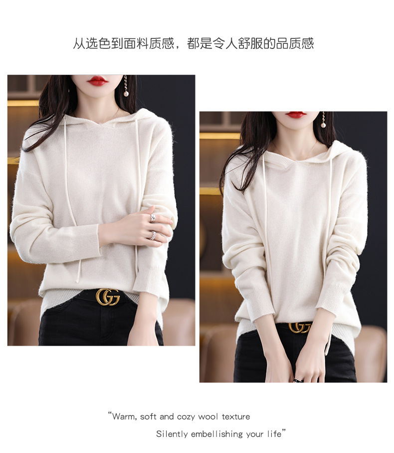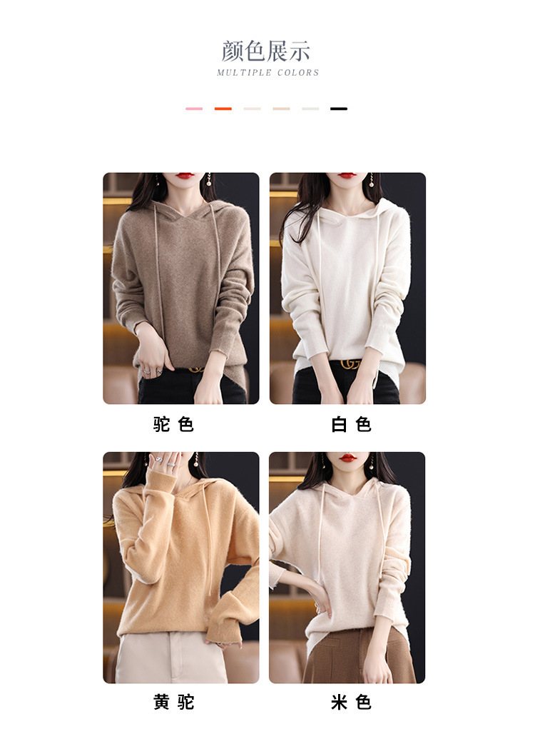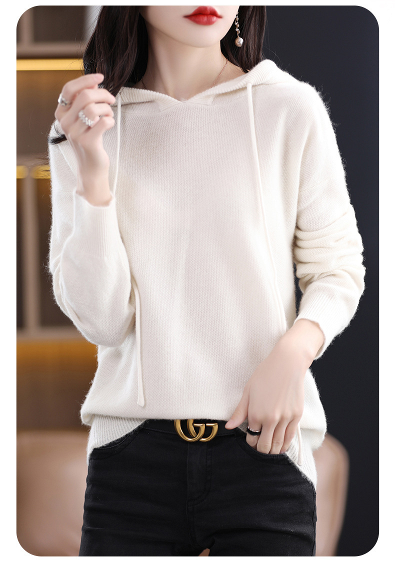 2023年秋冬の新型フード付きウールニットの女性パーカーのゆったりとしたプルオーバーの帽子付きセーター
