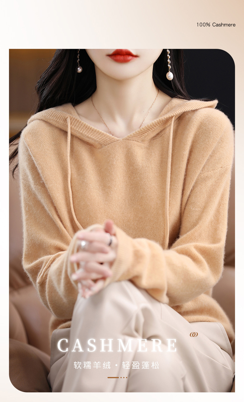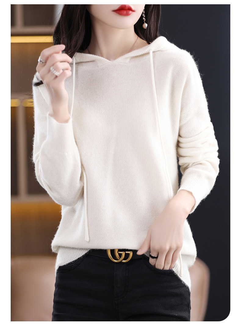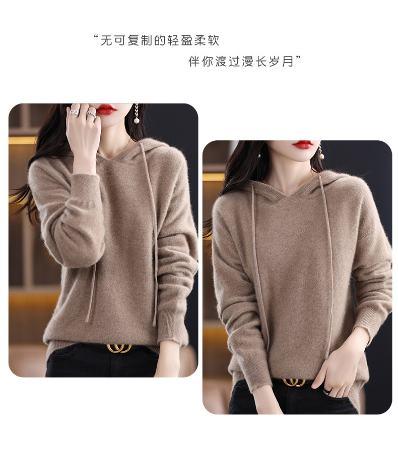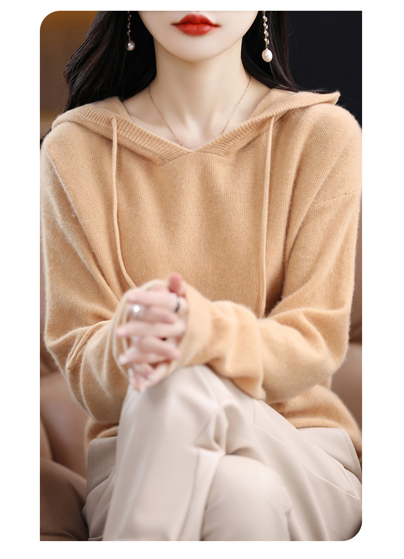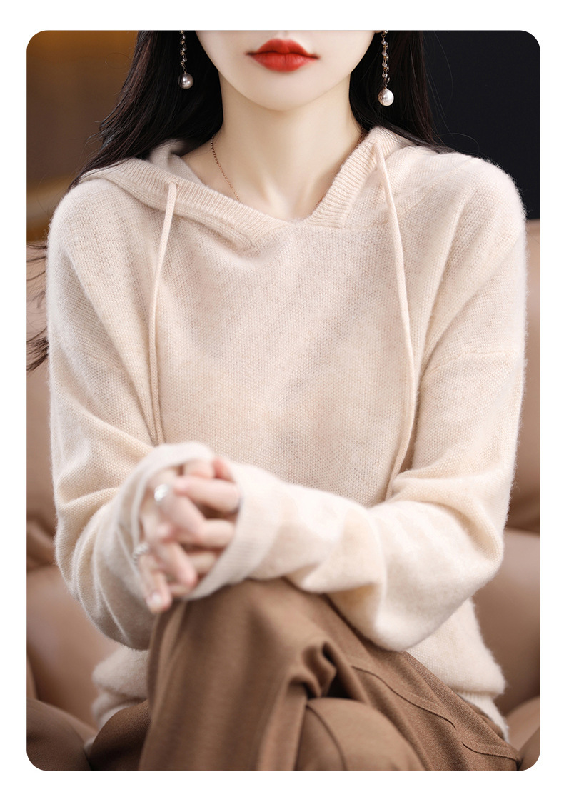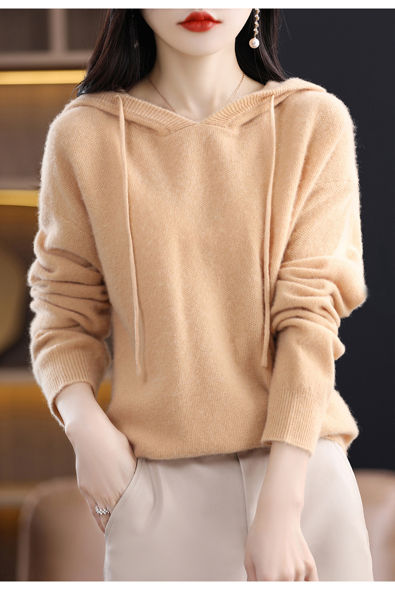 2023年秋冬の新型フード付きウールニットの女性パーカーのゆったりとしたプルオーバーの帽子付きセーター