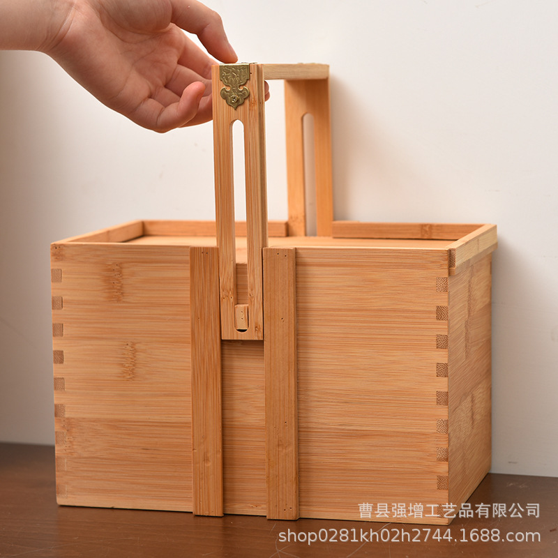 木製ハンドバッグ型二層竹製ピクニックボックス中華風ギフト包装箱菓子ギフトボックス