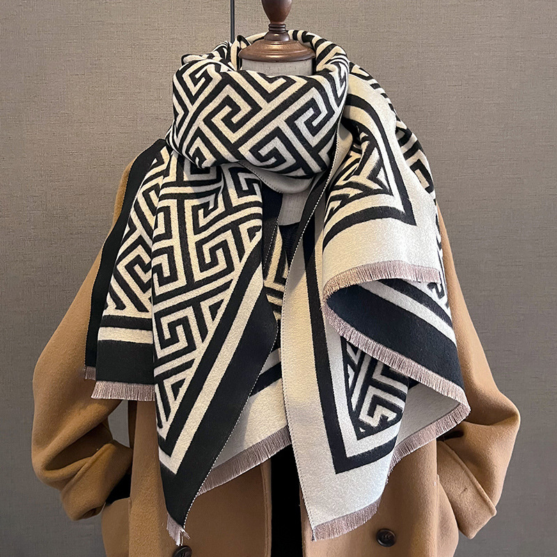 2025秋冬新作 民族風ショール 厚手 保温 小格子柄 イミテーションカシミヤ ショール スカーフ 卸売