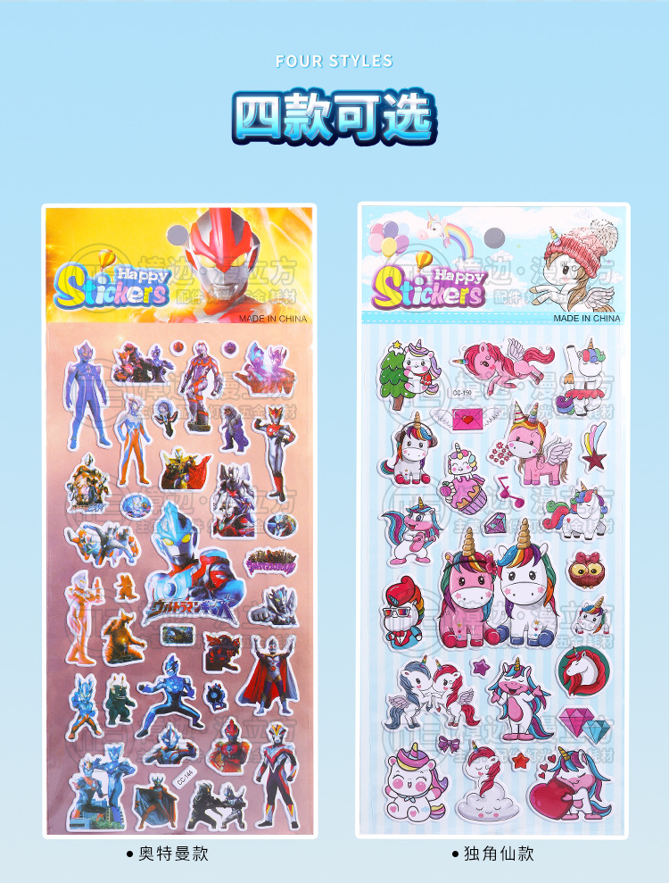 仕様 ウルトラマンランダム: 立体貼り1枚,ピカチュウランダム: 立体貼り1枚,艾莎ランダム: 立体貼り1枚,カブトムシランダム: 立体シール1枚,自動車総動員: 立体貼付1枚,サンリオ: 立体ステッカー1枚