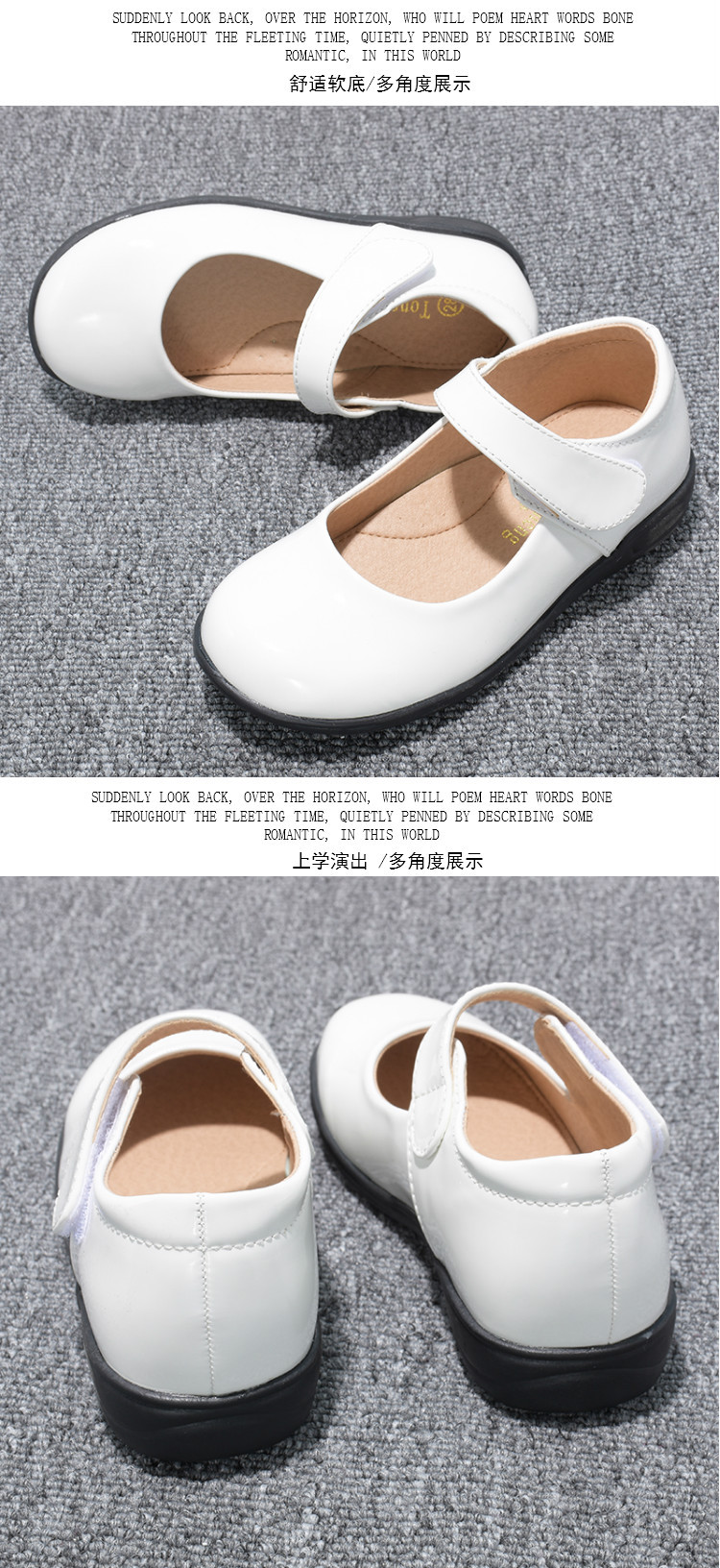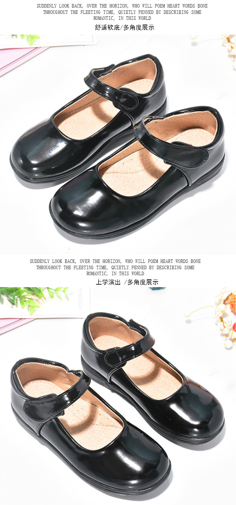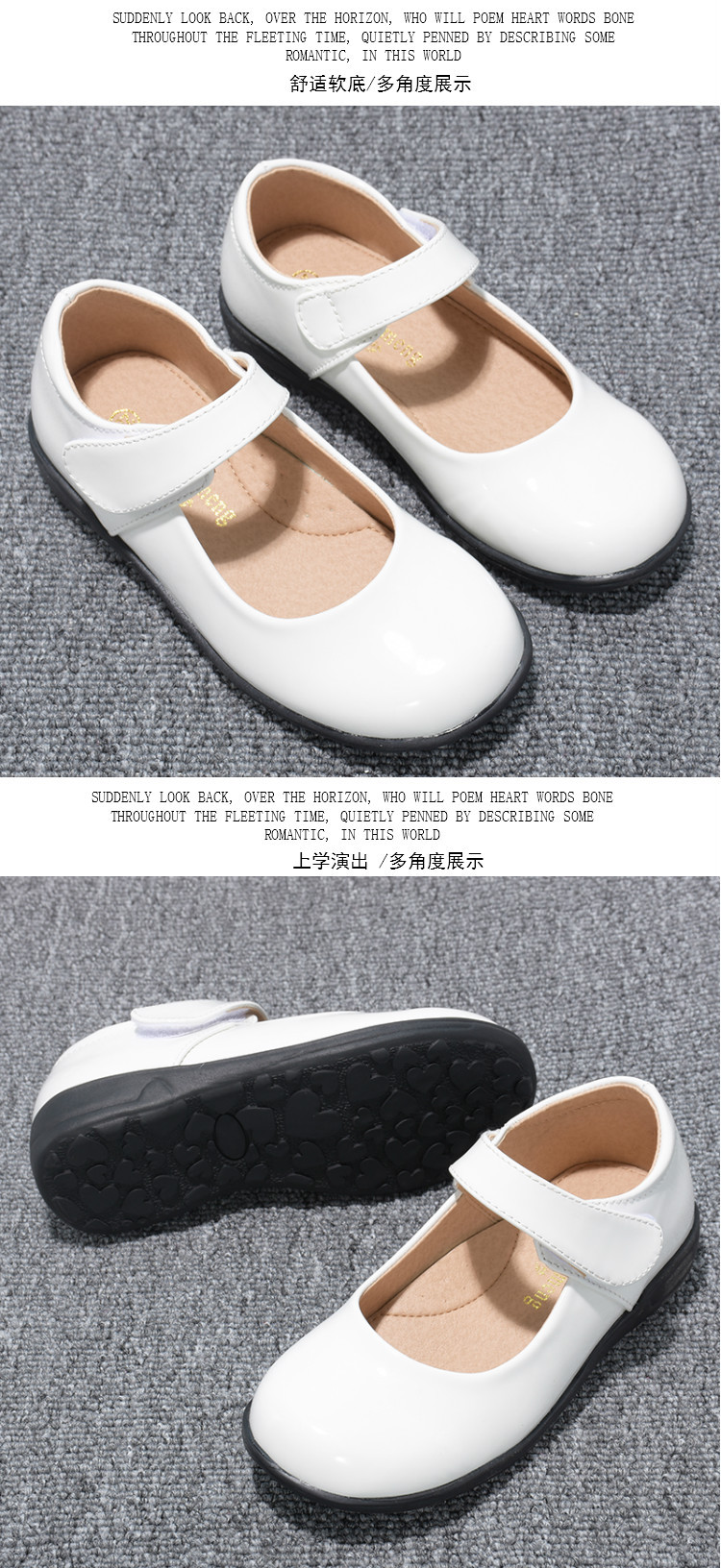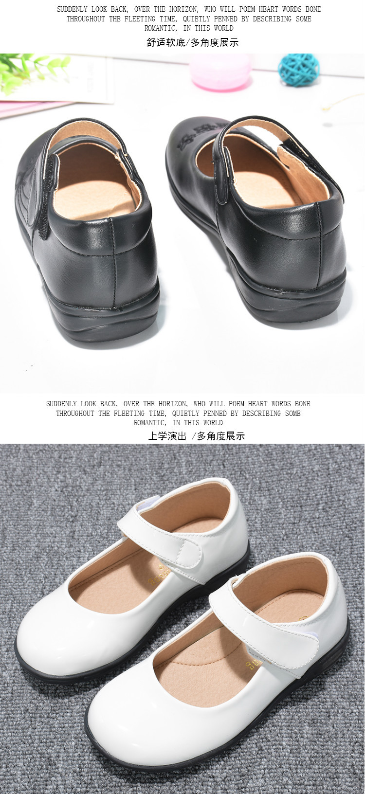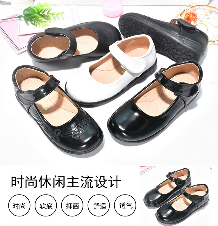 女の子革靴黒白色演出コーラスシューズ小中学生演出靴子供正装英倫ドレスシューズ春秋