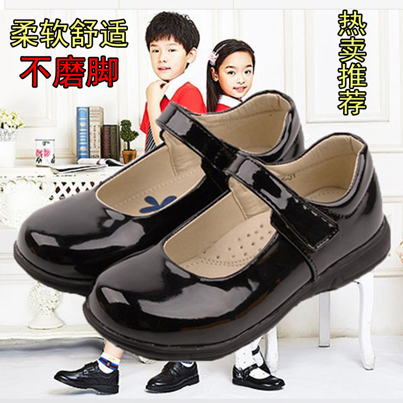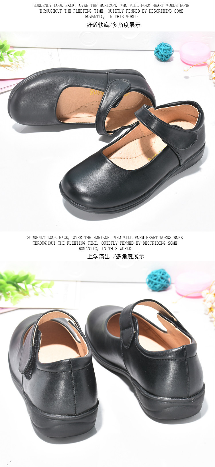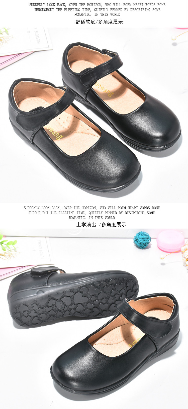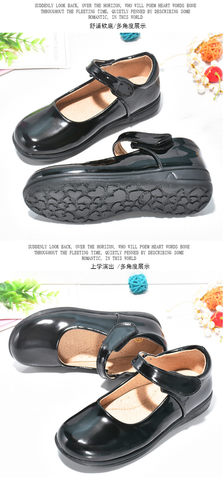 女の子革靴黒白色演出コーラスシューズ小中学生演出靴子供正装英倫ドレスシューズ春秋