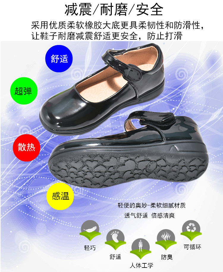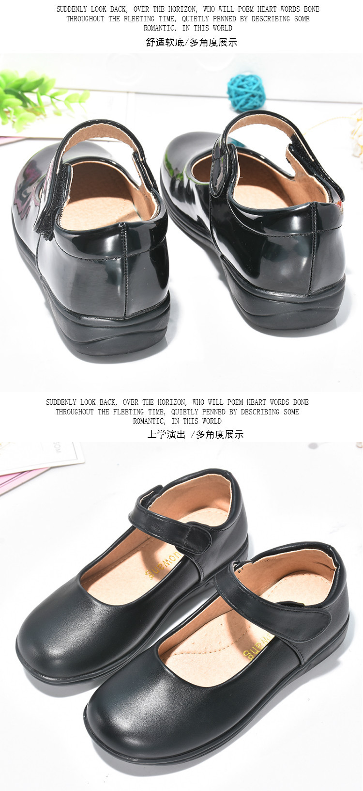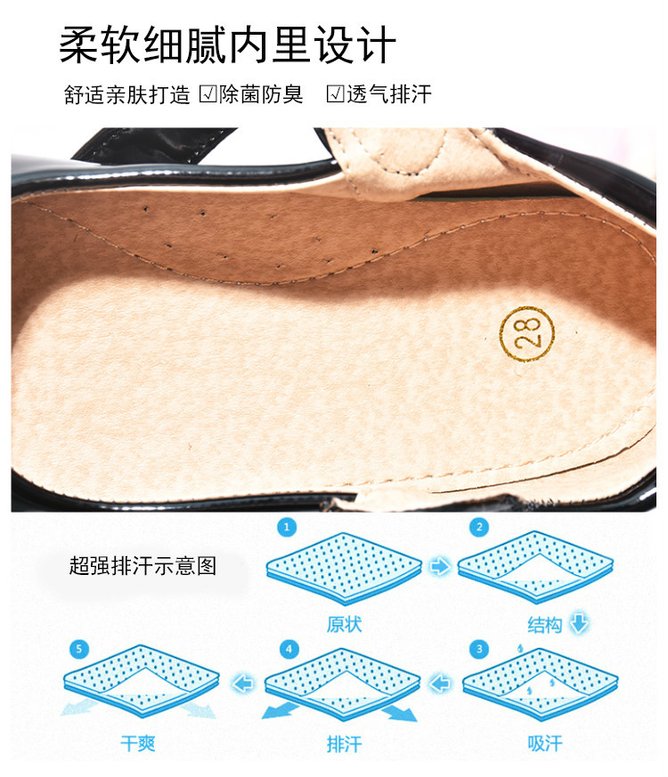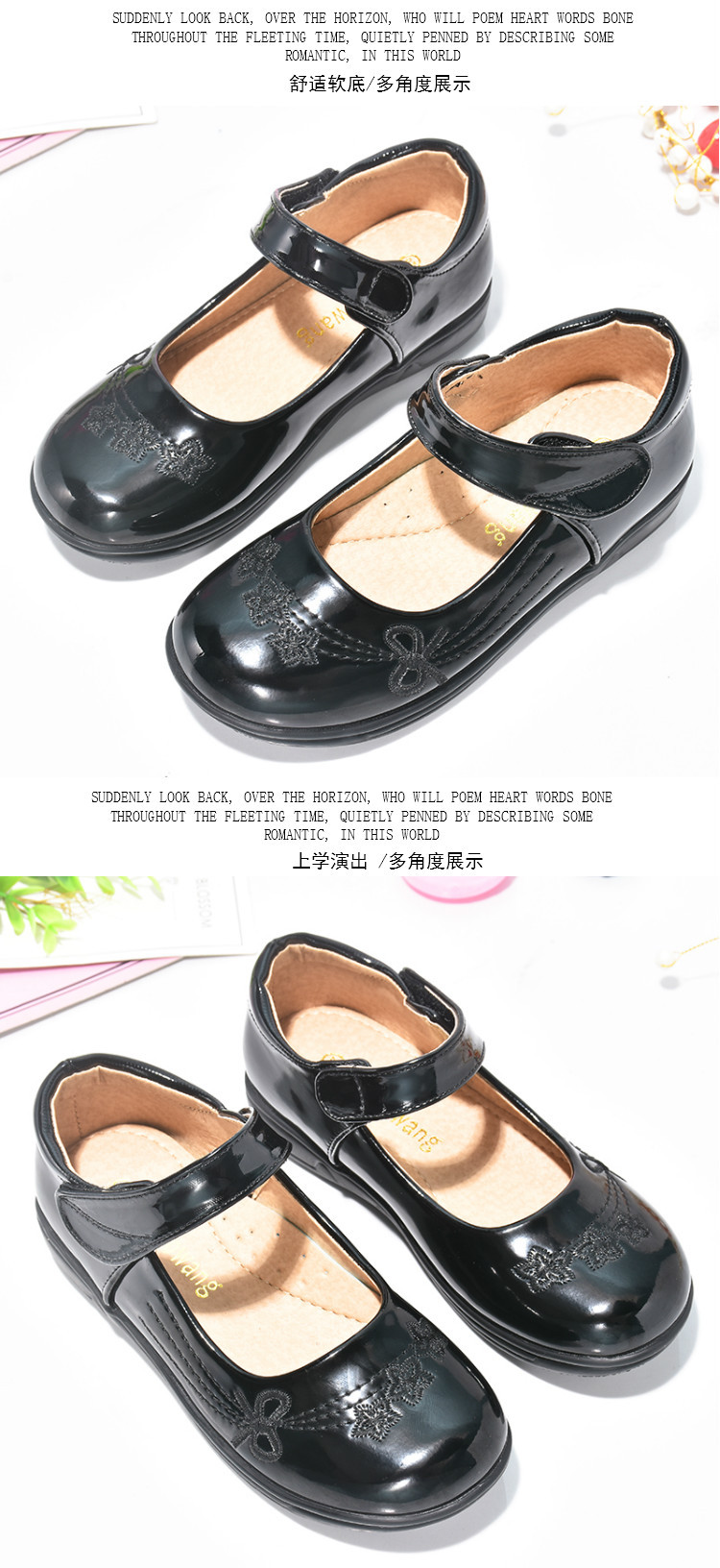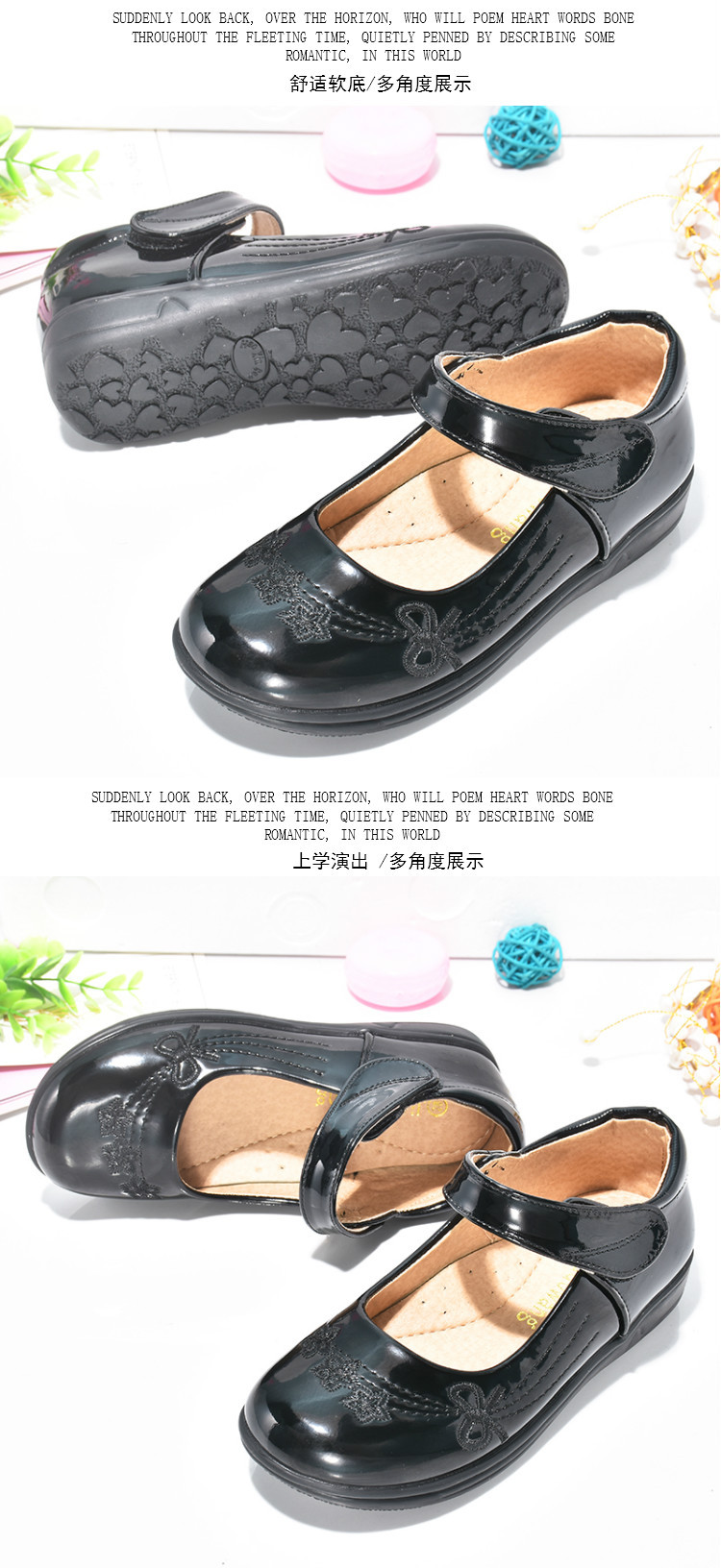 女の子革靴黒白色演出コーラスシューズ小中学生演出靴子供正装英倫ドレスシューズ春秋