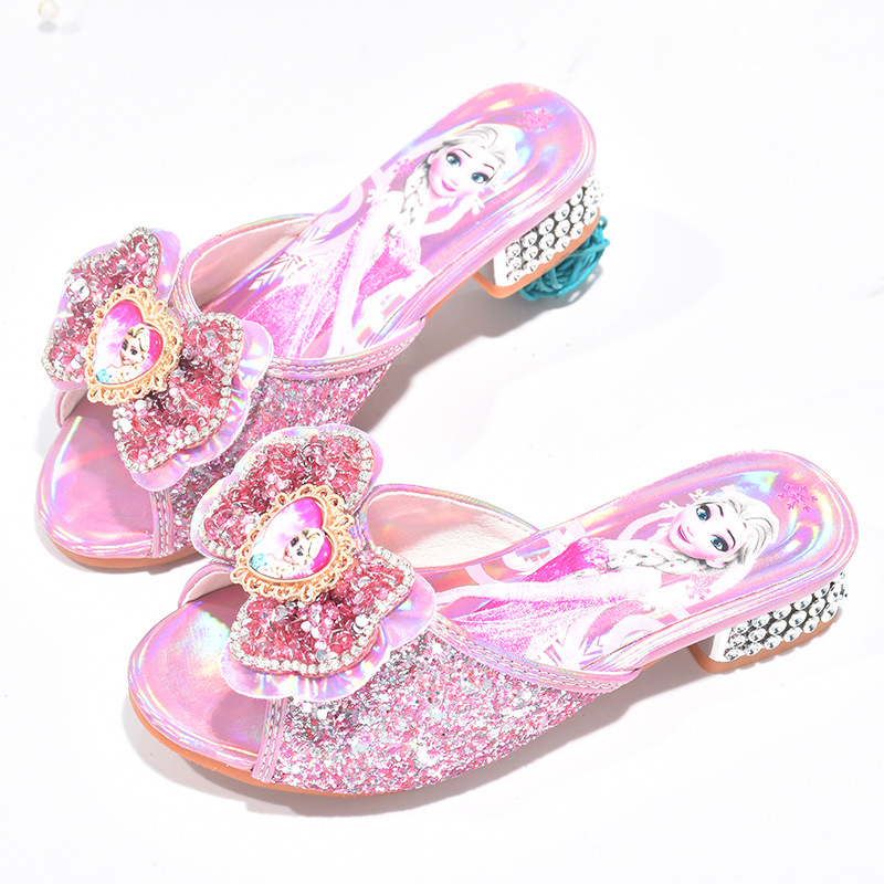 愛莎お姫様靴女の子スリッパ2023夏タイプ子供ハイヒール水晶靴雪氷奇縁赤ちゃんサンダル