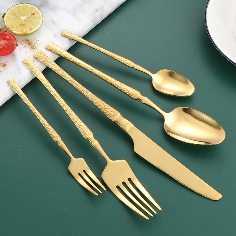 クロスボーダーのハンマーの小柄な腰のステンレスの刀のフォークのスプーンのデザートの小さいスプーンの果物のフォークの西洋の食器のセットの金色の石の平の金