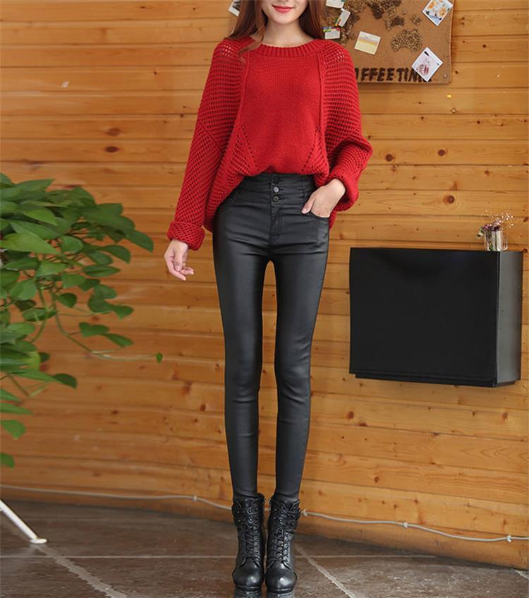2025年冬季新款加绒加厚pu皮哑光紧身弹力打底裤显瘦高腰皮裤子女