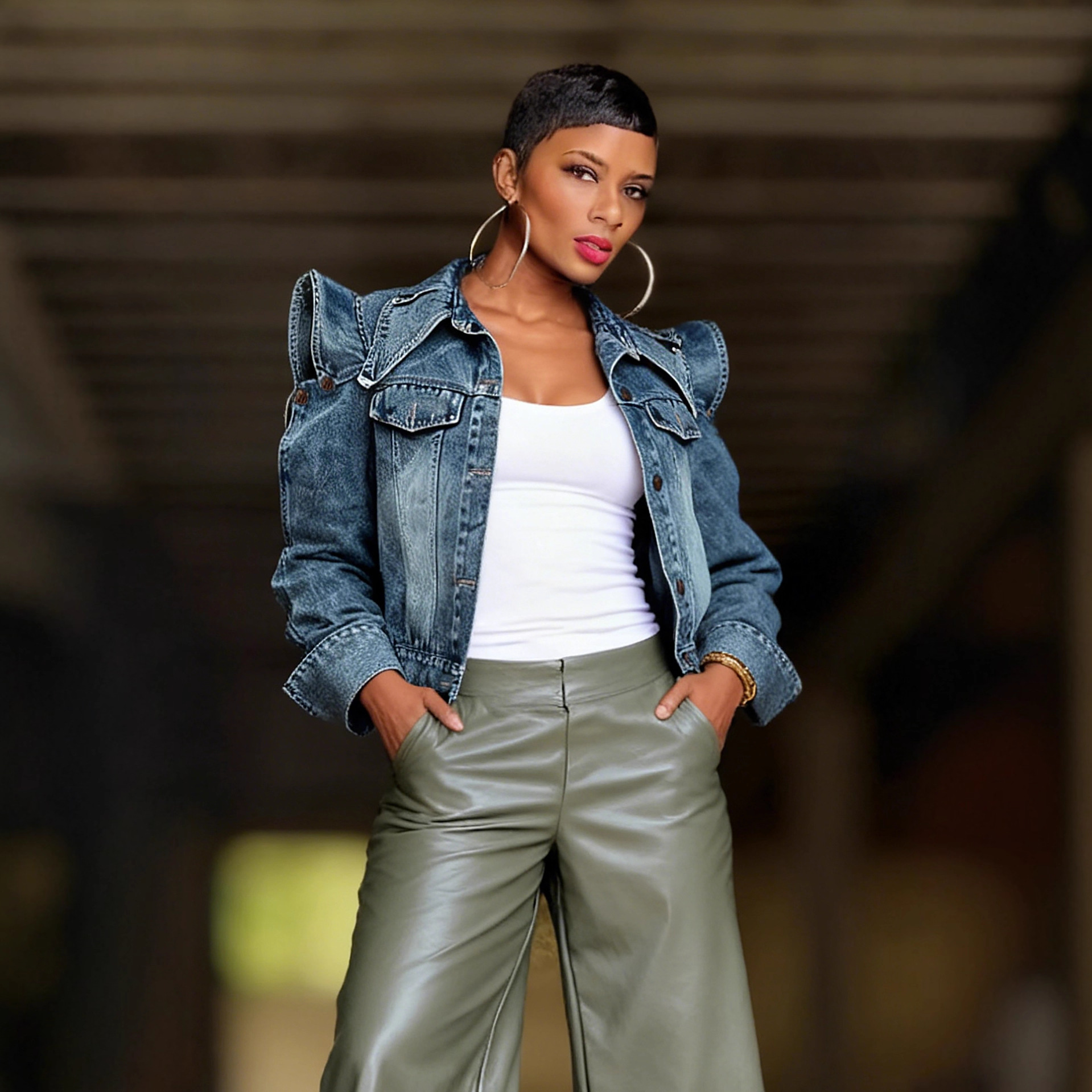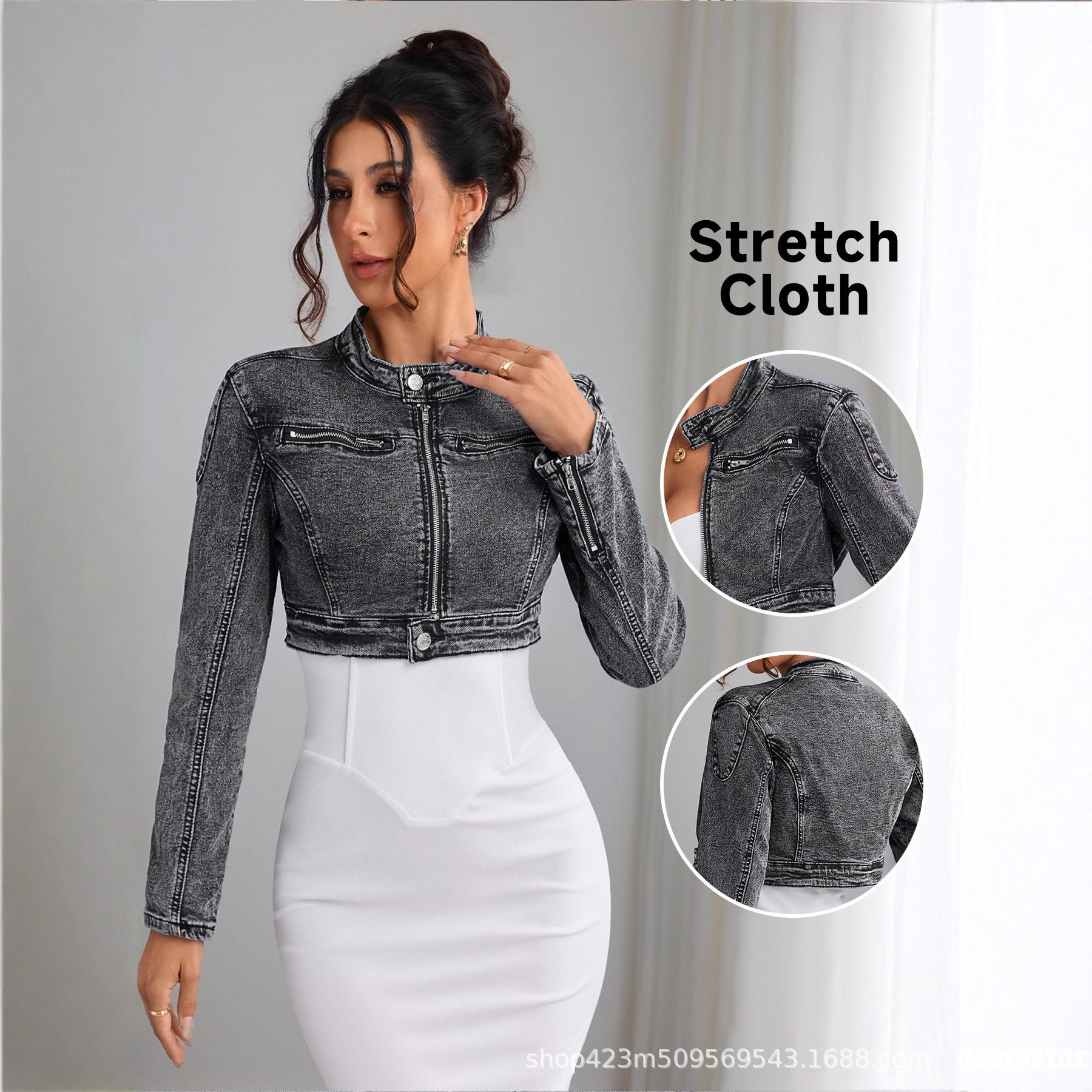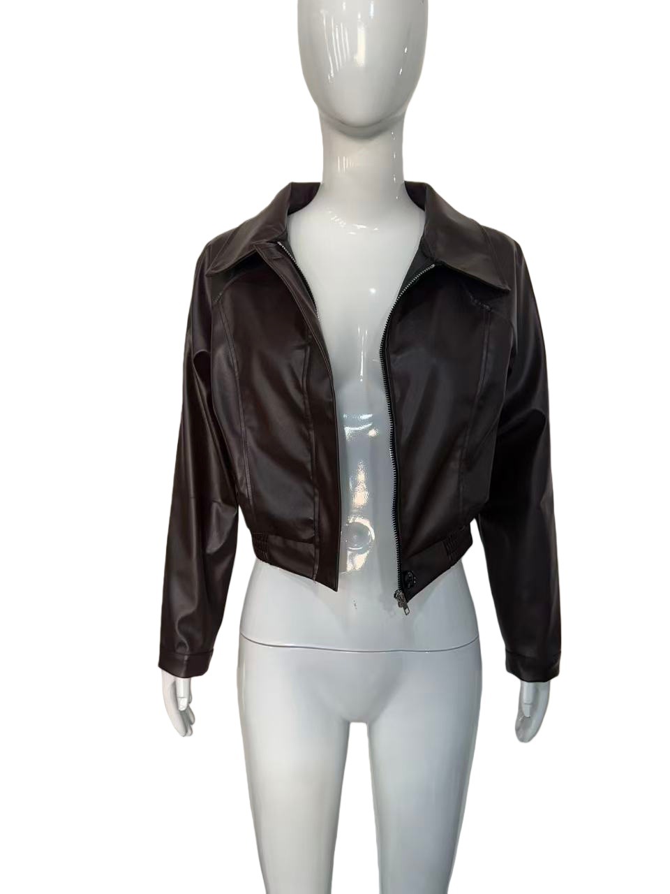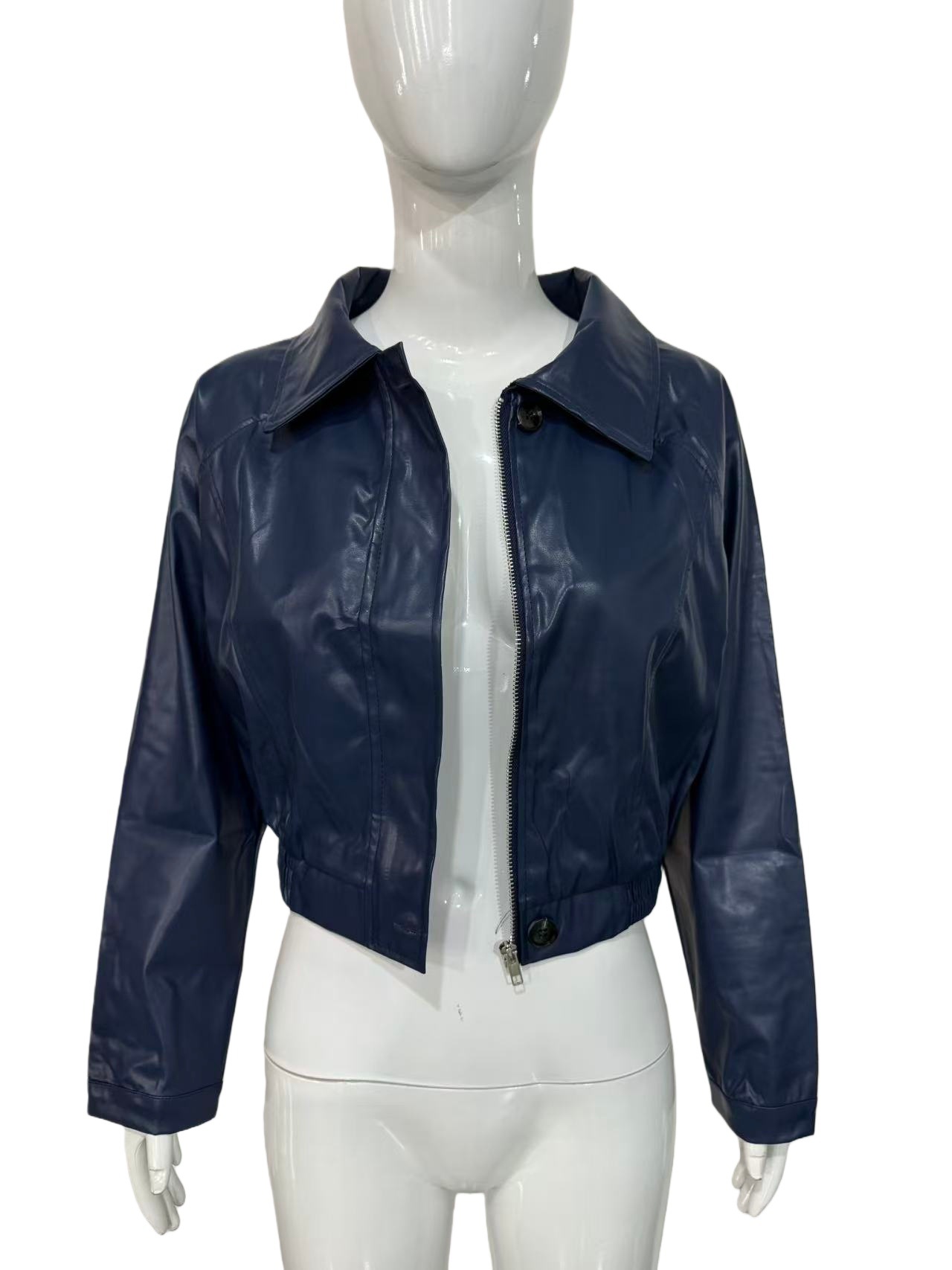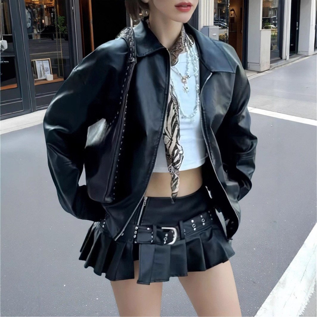 复古气质翻领拉链PU皮美式休闲夹克外套