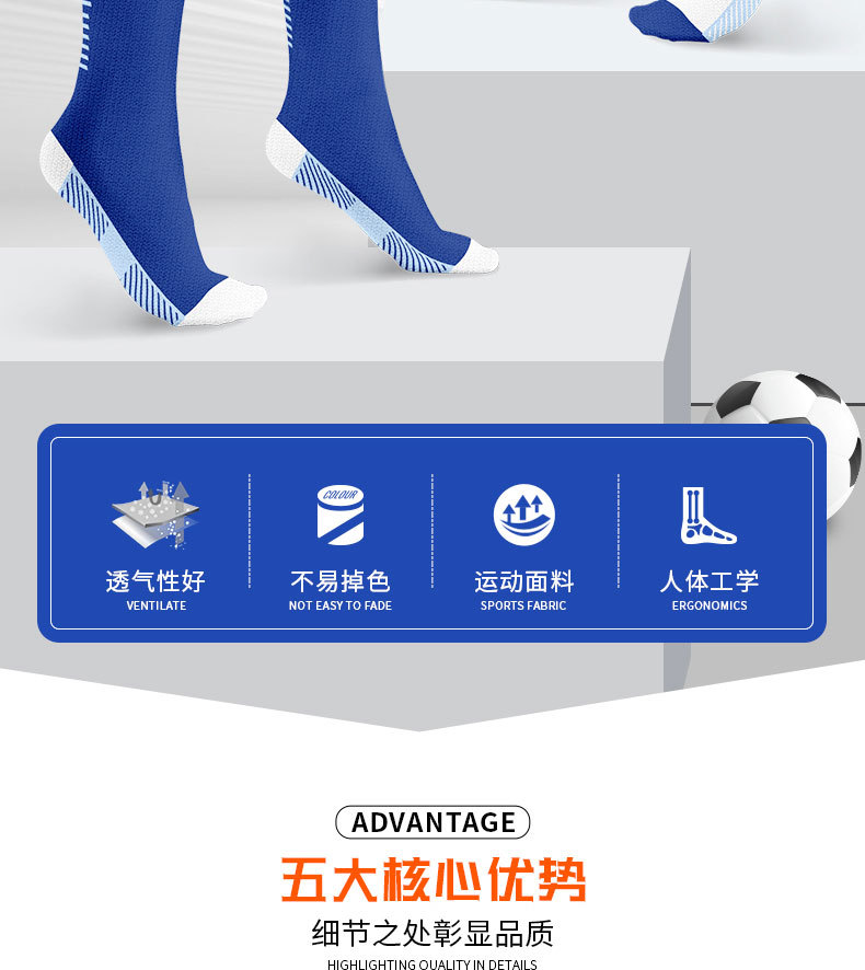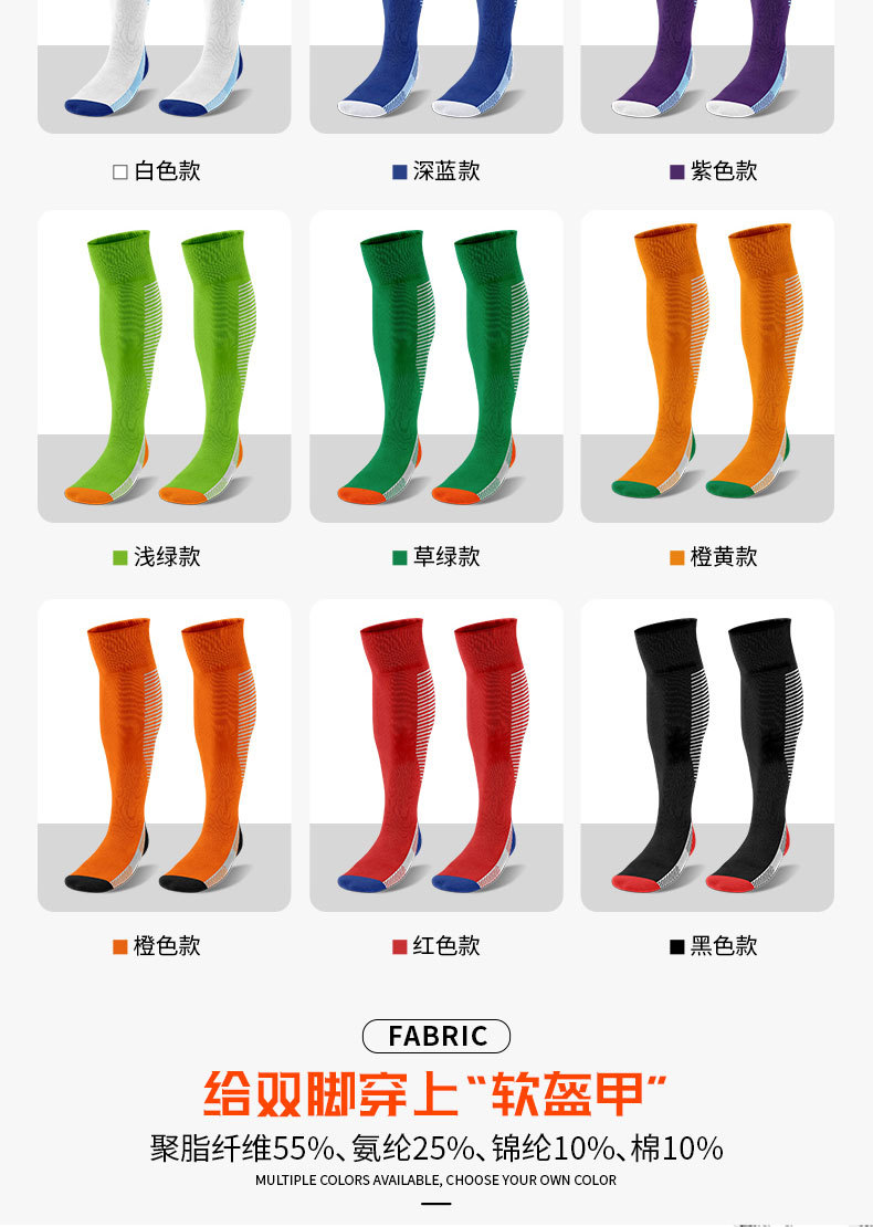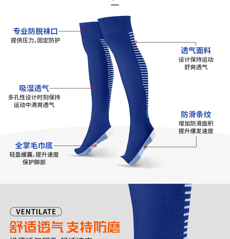 タオルの底のサッカーの靴下の長い筒は吸湿して滑り止めのスポーツのボールの靴下のストライプが膝の子供のサッカーの靴下のメーカーを越えて卸売りします。