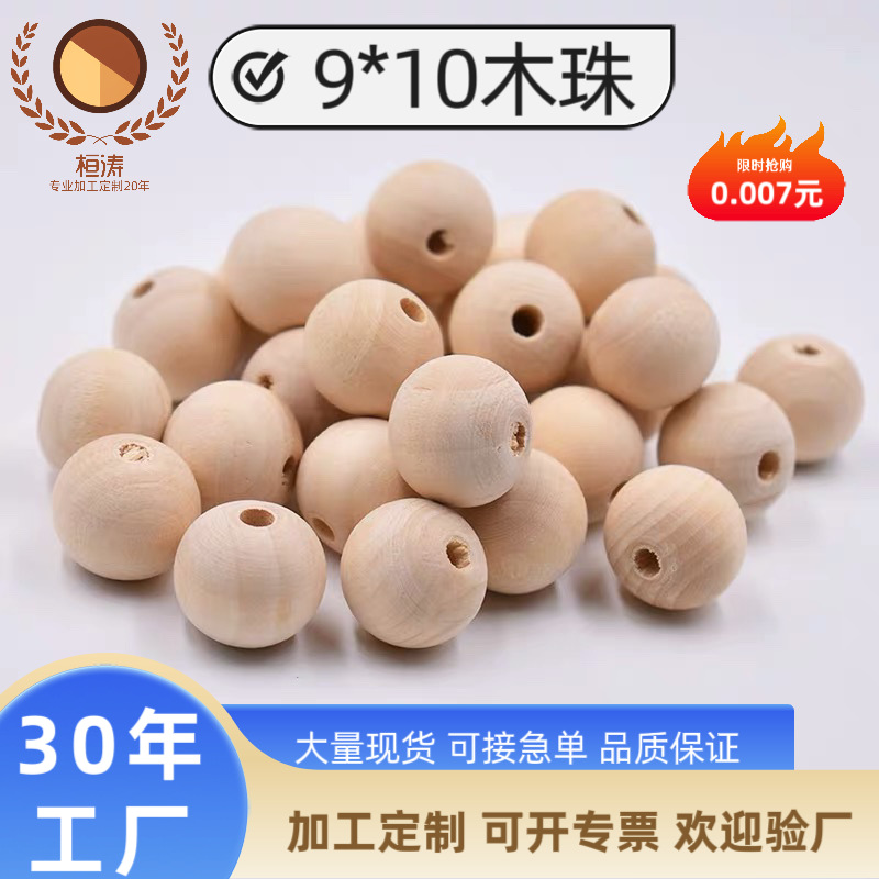 現物木珠卸売り9*10mm楓木珠散珠卸売りDIYクリスマス丸珠落書き木珠串配