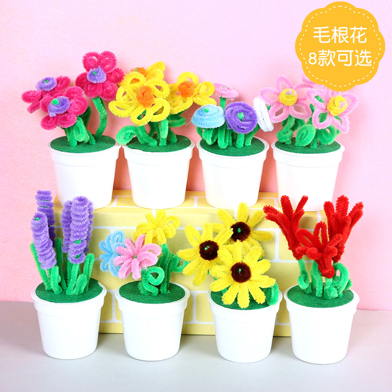母の日の手作りdiy幼稚園のアートエリアの材料は子供を包んでツイストの花束の鉢植えを作ります。
