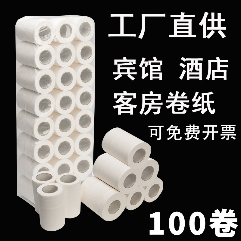 100卷商用宾馆酒店客房用纸有芯卷纸整箱批发厕纸卫生纸小卷纸