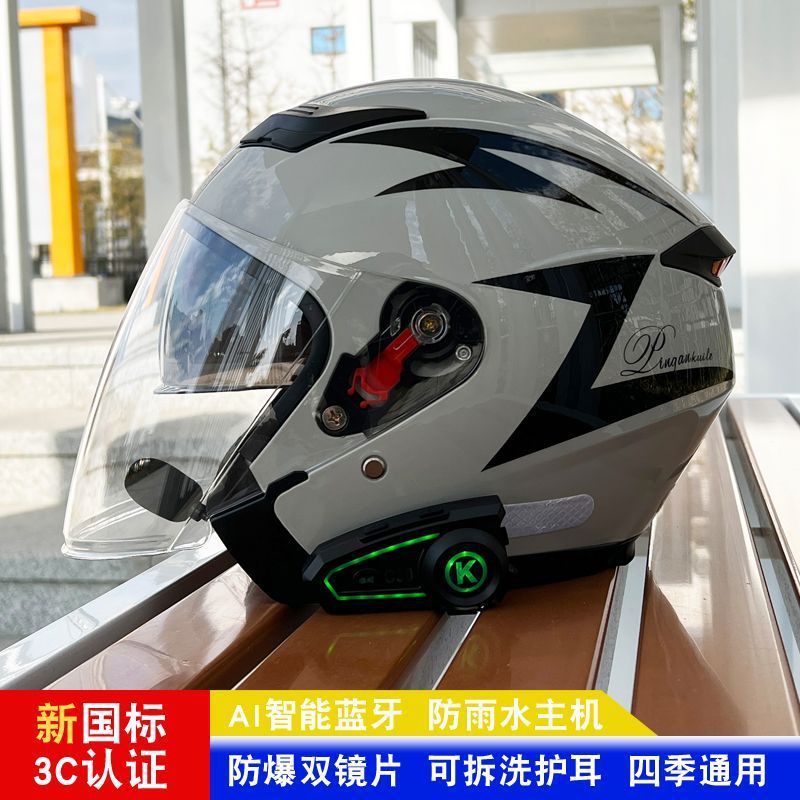 双镜片智能蓝牙头盔男女四季通用四分之三半盔电动摩托车
