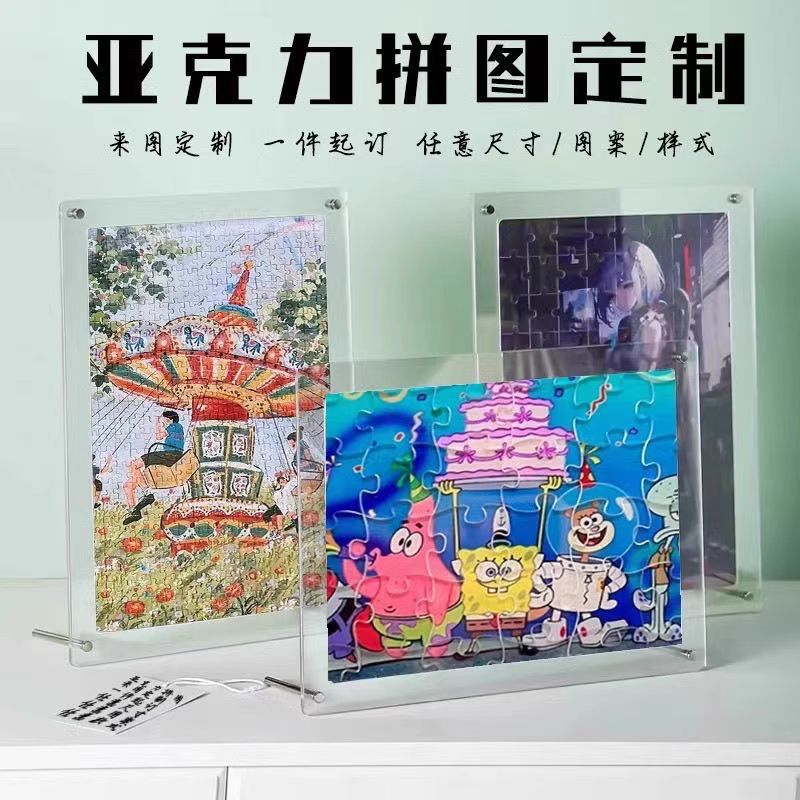 透明アクリルパズル、写真立て付き、カスタムメイド、芸能人グッズ、漫画キャラクター、カップル写真、卓上ディスプレイ、カスタムパズル