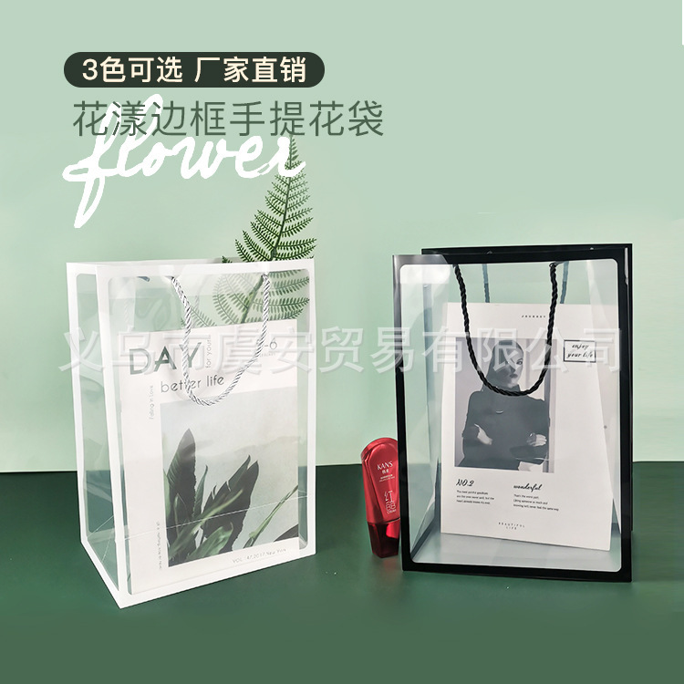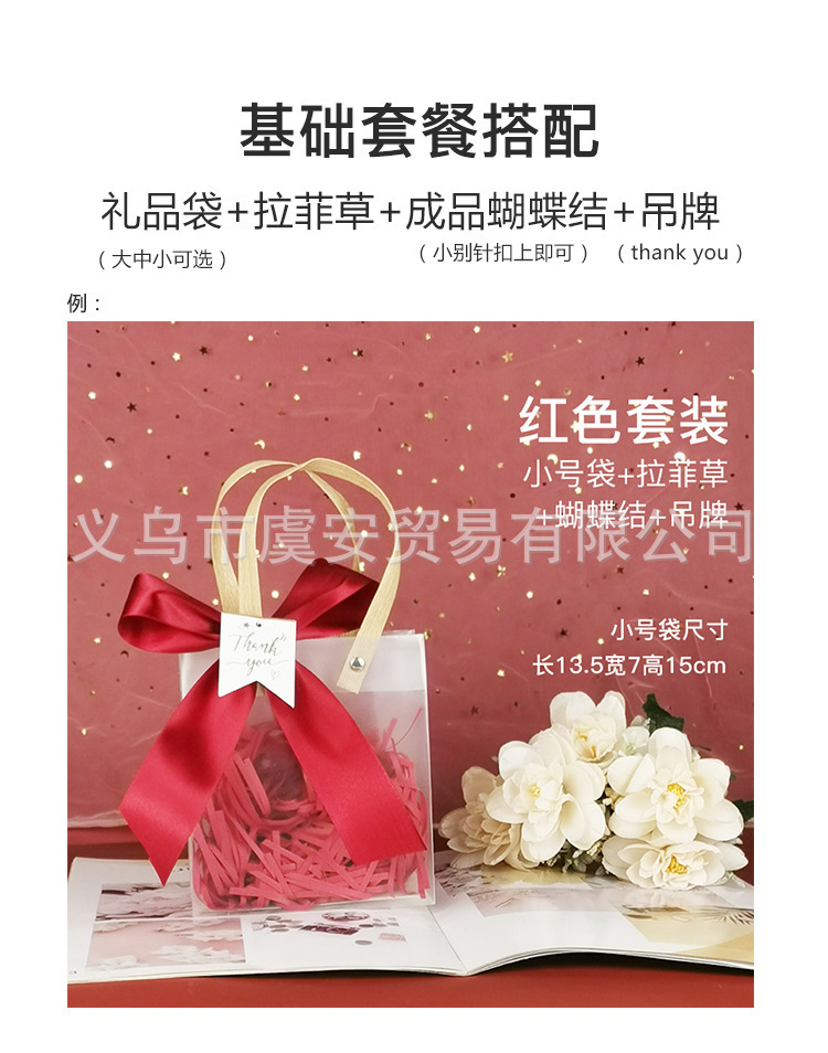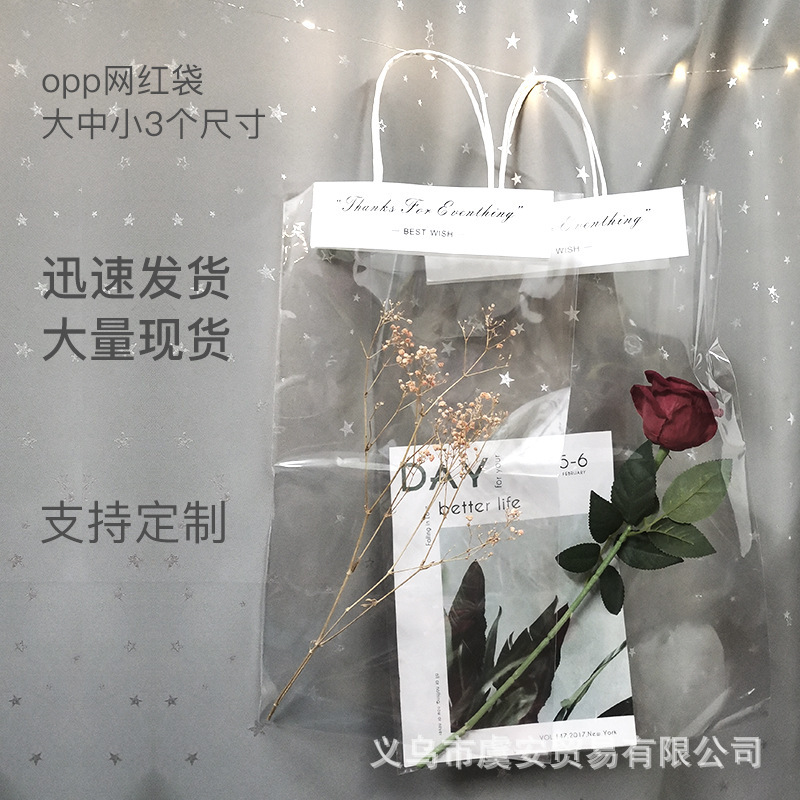 花束diy材料花芸ギフトネット赤袋花束包装紙袋透明pvc手提げ袋新鮮な花袋透明