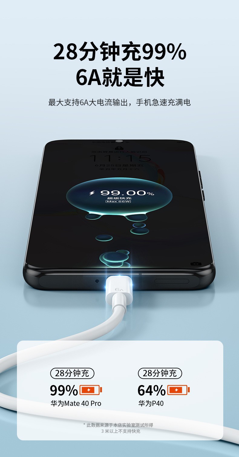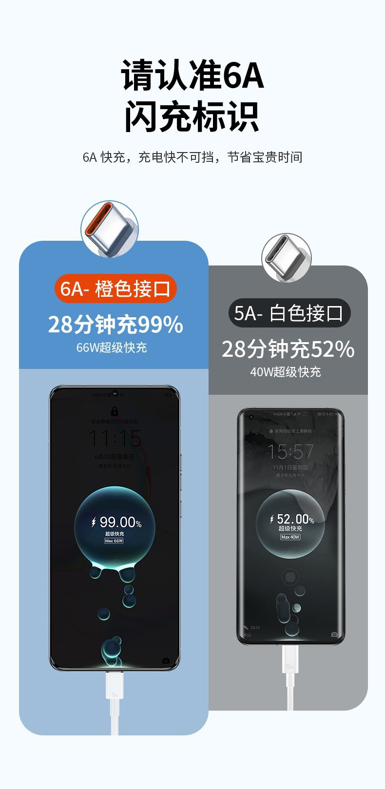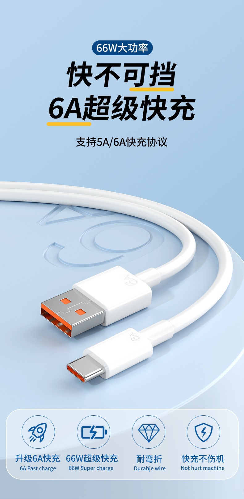 6A手机数据线 type-c快充充电线华为快充usb安卓充电线苹果机适用