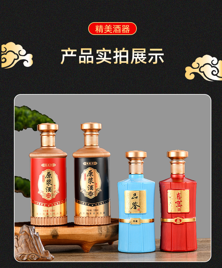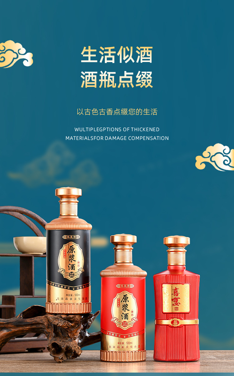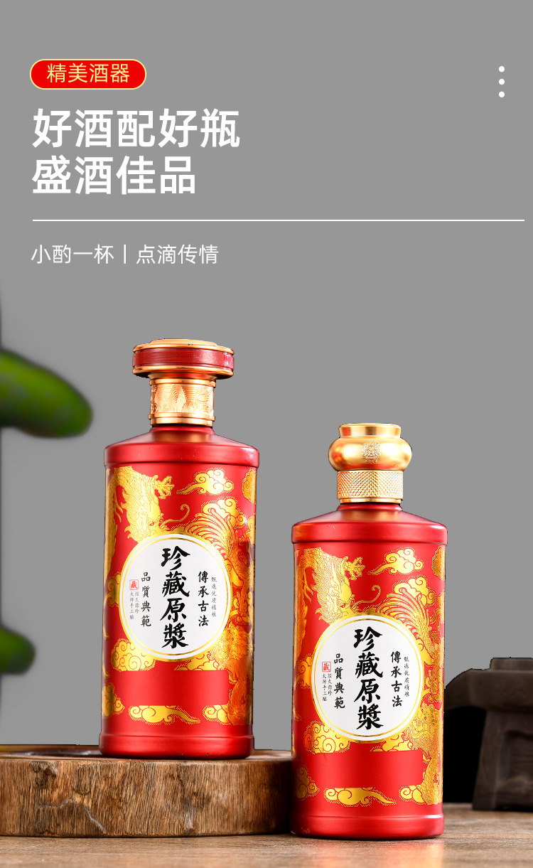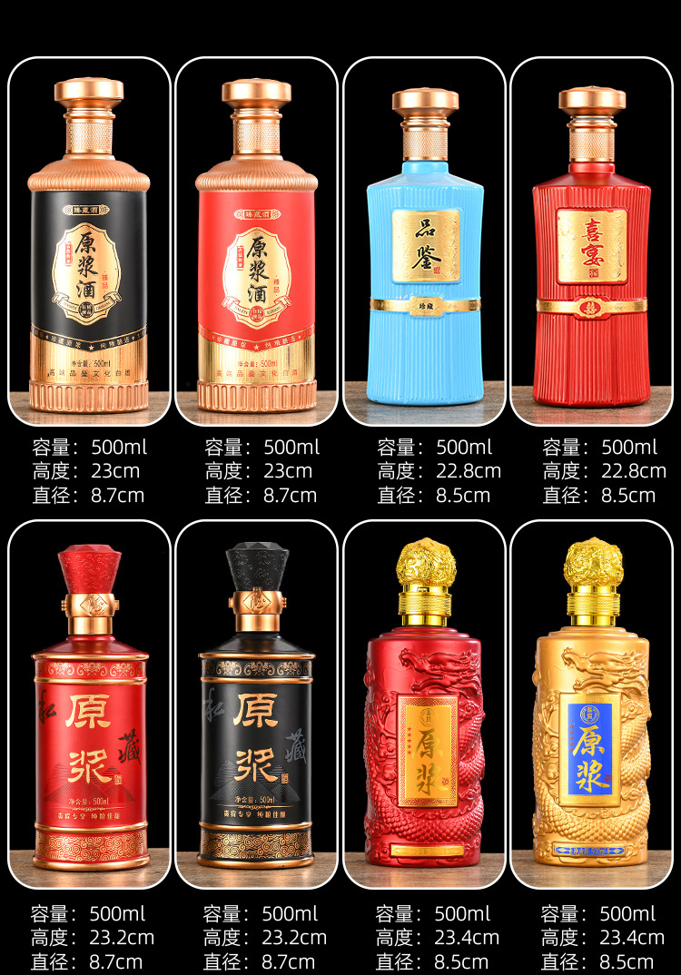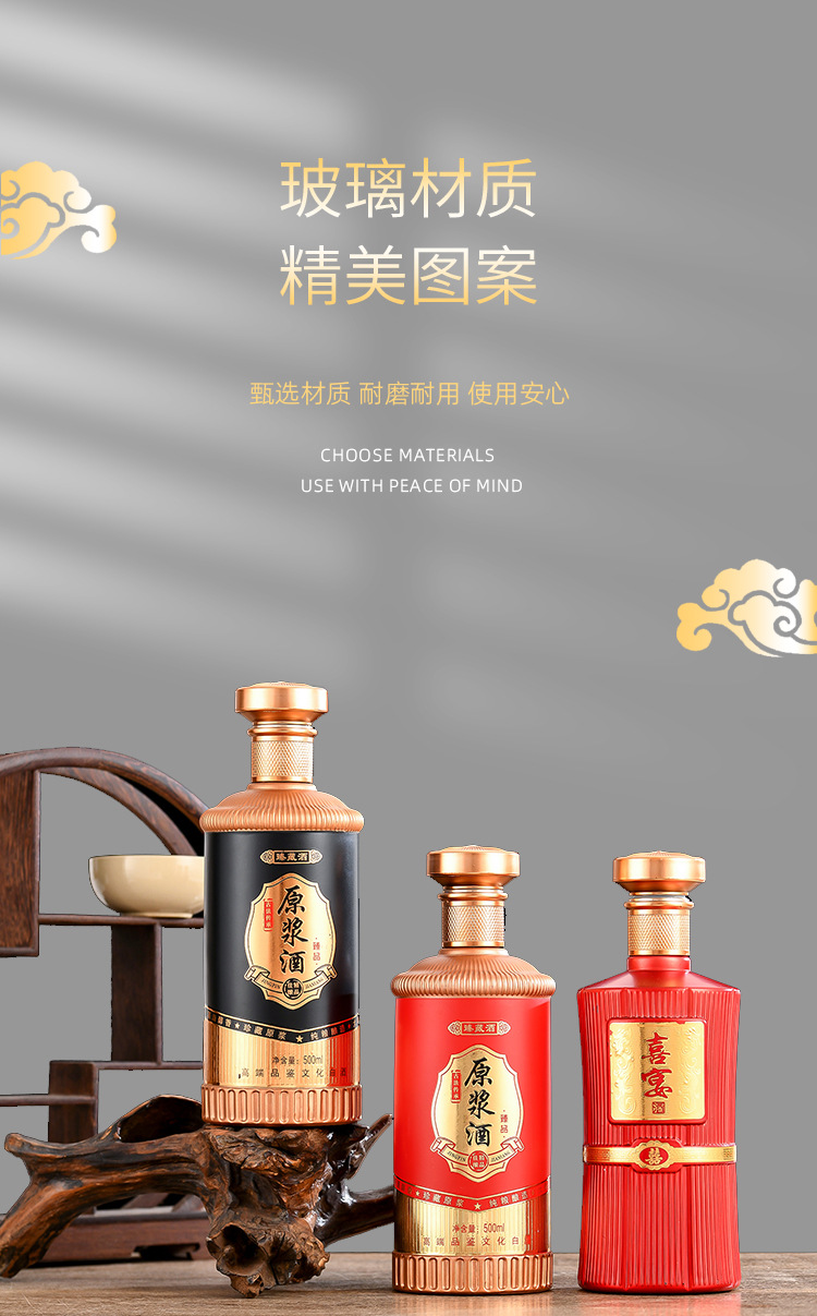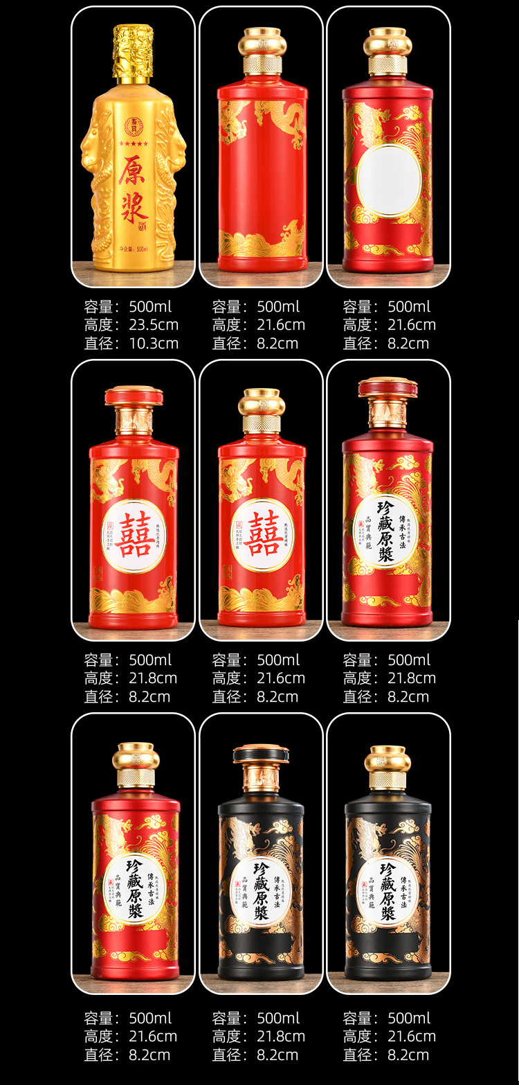 卸売り白酒瓶1斤入りガラス塗装瓶喜酒瓶白酒分注瓶宴会酒瓶密封ガラス瓶