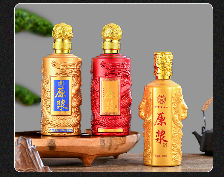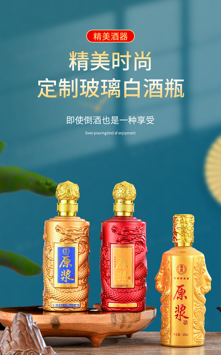 新龍紋レリーフ白酒瓶透明ガラス酒瓶500mlシール1斤入り印字ロゴ空瓶