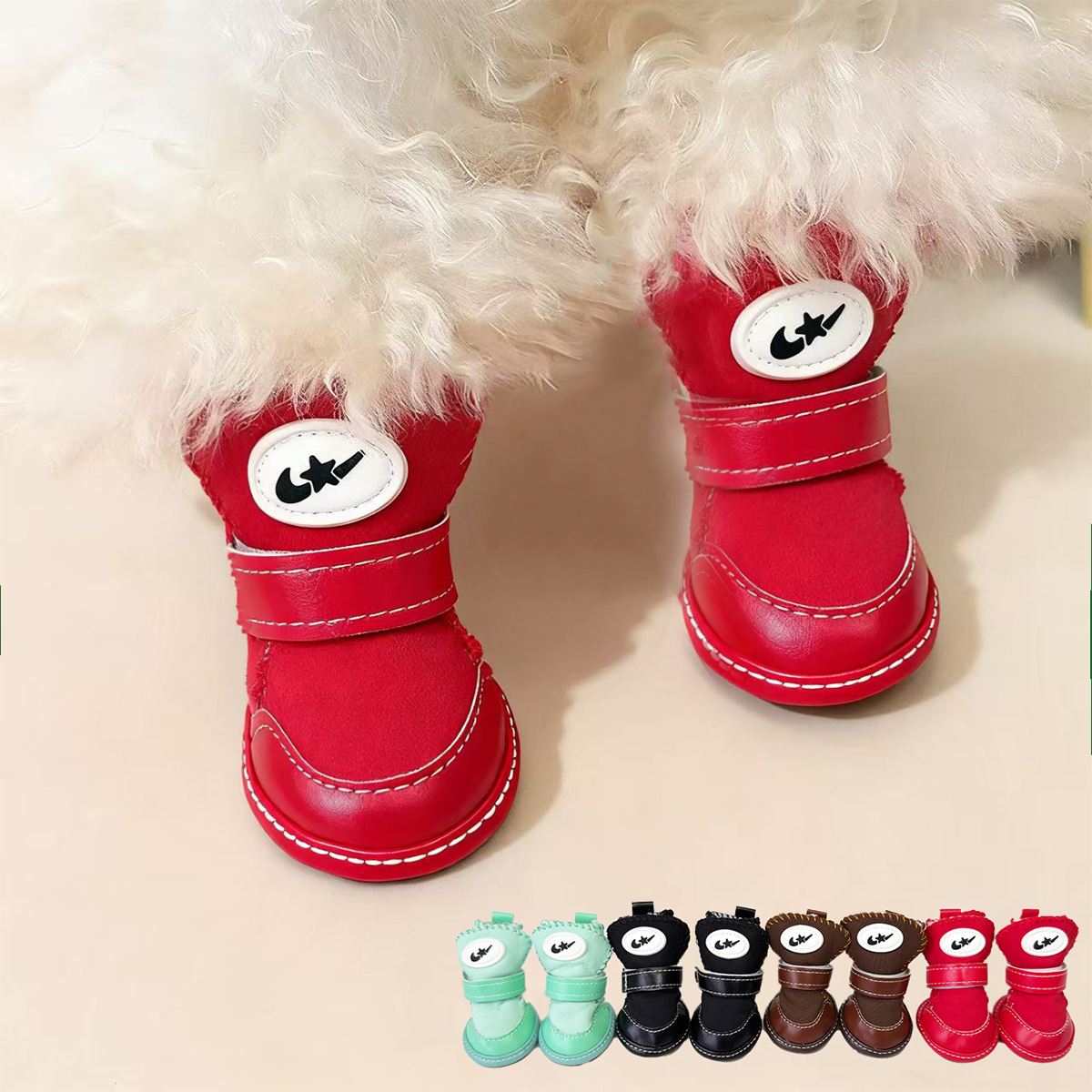 越境爆金ペット防水雪地ブーツ秋冬ベルベット保温犬靴中小型犬テディブーツ
