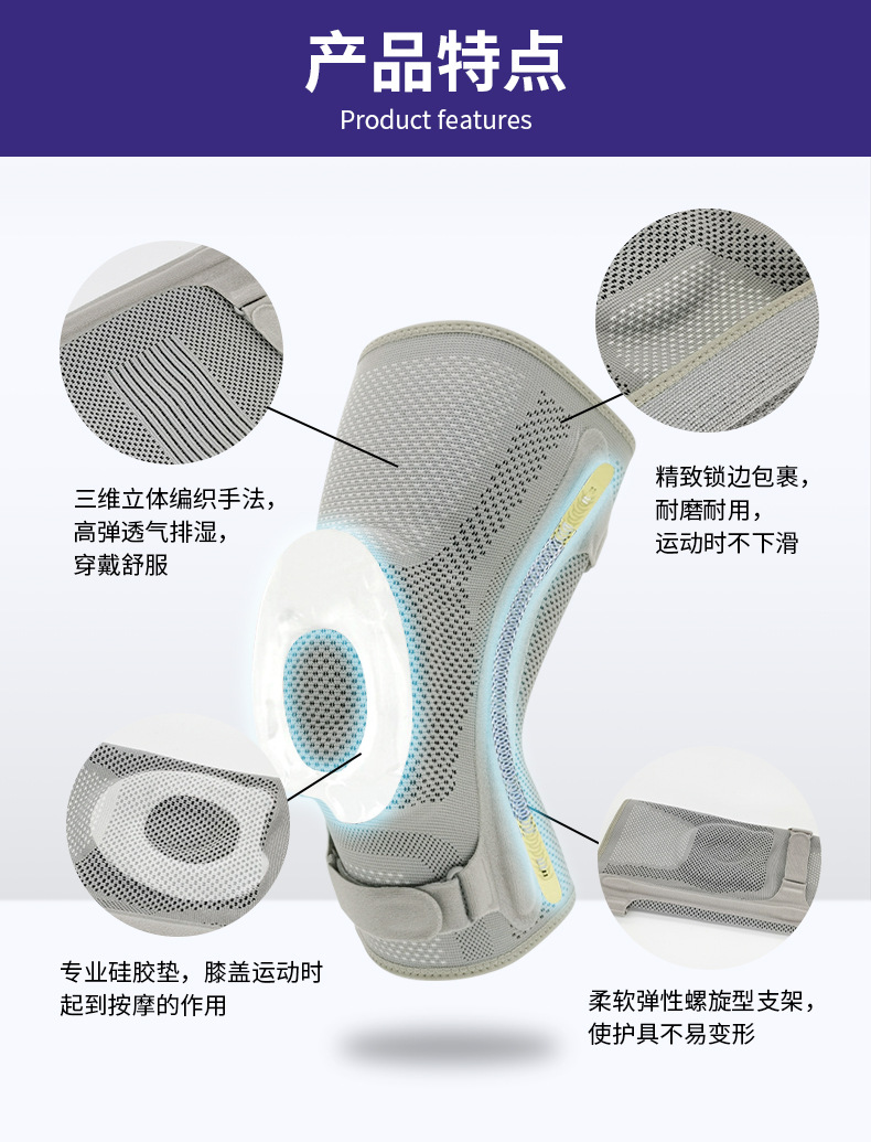 尼龙运动护膝登山跑步半月板防护硅胶减震髌骨加压弹簧绑带护膝套