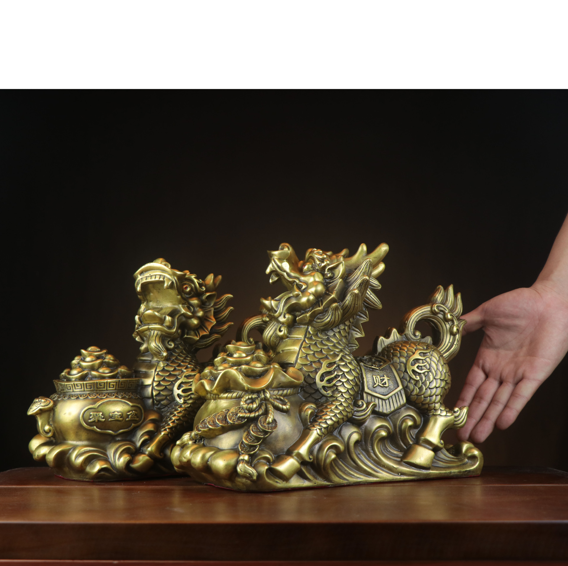 銅聚宝盆麒麟置物一対の真鍮麒麟寝室客間玄関オフィス装飾工芸品大サイズ