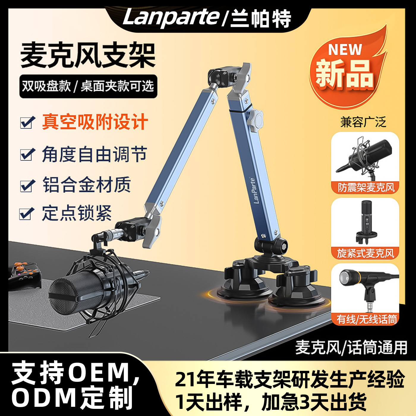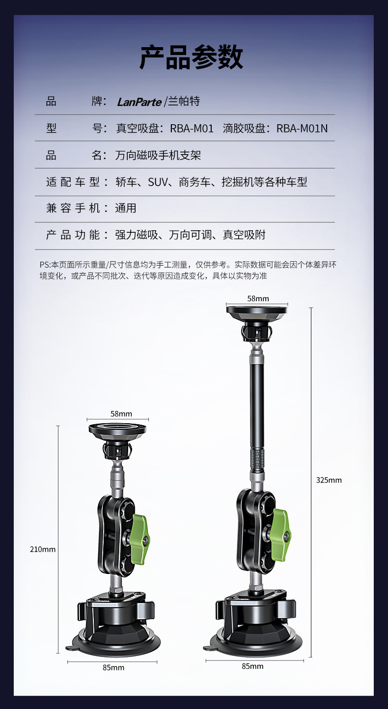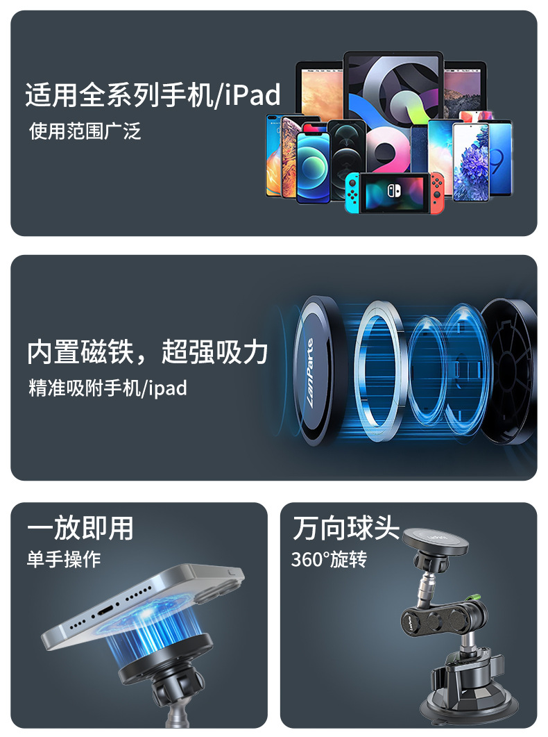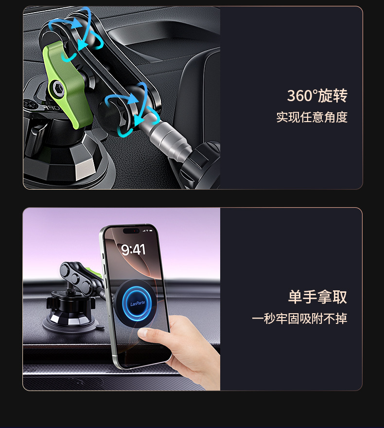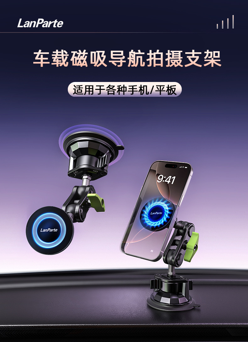 兰帕特正版车载手机支架防抖万向吸盘直播拍摄手机支架车载导航支