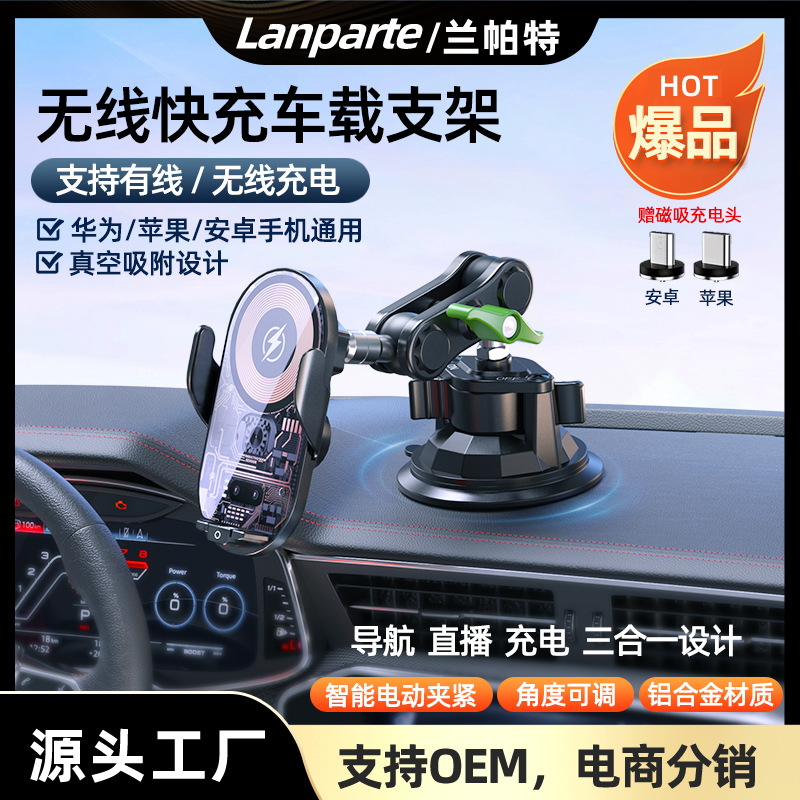 国境を越えた新製品誘導車載携帯電話ワイヤレス充電ホルダー、ダッシュボードフロントガラス車載携帯電話ナビゲーションスタンド