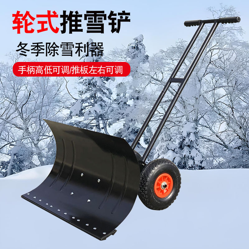手推式雪铲推雪板双杆全钢轮式推雪铲轮胎车轮推雪锹铲雪板除雪器