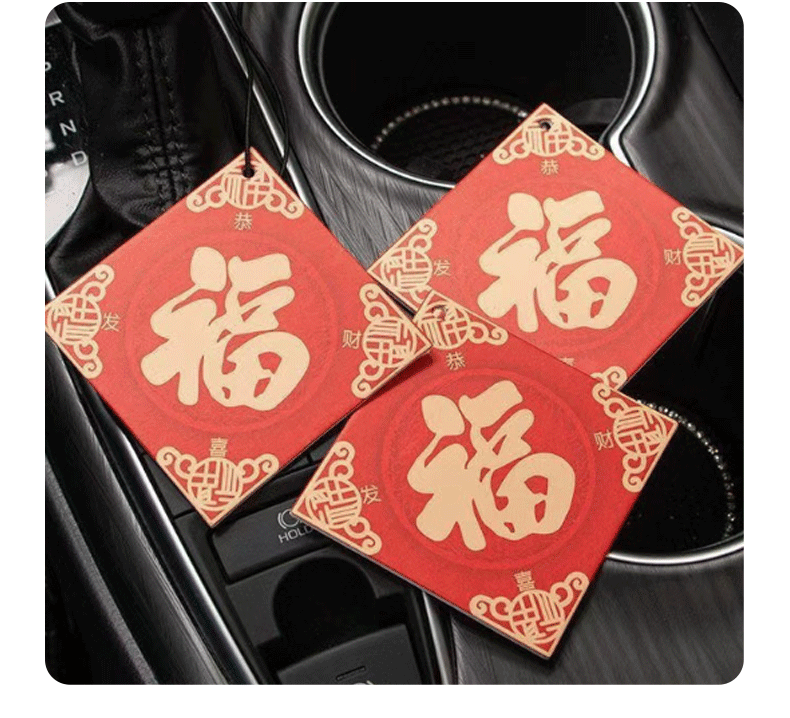 爆款喜庆装饰福字香片家居汽车挂式香片持久留香车载香片一件代发