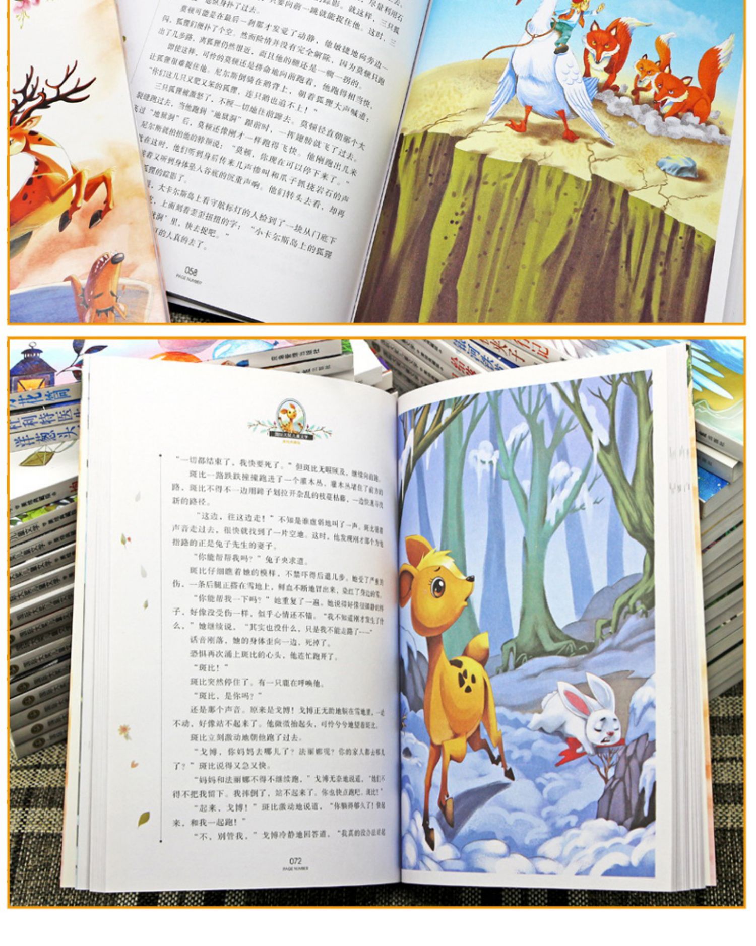 カラー 草原の小屋,子供のための詩,くるみ割り人形,去年の木,大きな森の小屋,ラクダ祥子,ガチョウ旅行記,ナルニアの伝説,デュレット医師航海記,ジャングルの冒険,ラッパの約束,木の人形の旅行,うその国の冒険,細菌の世界の冒険,狐列那の物語,飛べる教室,柳林のうわさ,牛を吹く王の冒険,熊ちゃんの冒険,いたずら日記,銀ピンの夏,飛鳥集新月集,鹿斑比,父と子,ウサギ坂,小さなハイジ,レインボー鳩,青い鳥,キュリー夫人,万華鏡,胡桃の木さん,鉄道のそばの子供たち,銀河鉄道の夜,霊犬レイシー,立ったカニ,おじいちゃんのおじいちゃんはどこから来たの?,青いキツネの城,子犬の小さな家,小さな平手打ちのおとぎ話,孤独なカニ,飛びたい猫,小さな木の葉のおとぎ話,首をかしげた木の杭,白オオカミ,シロナガスクジラの目