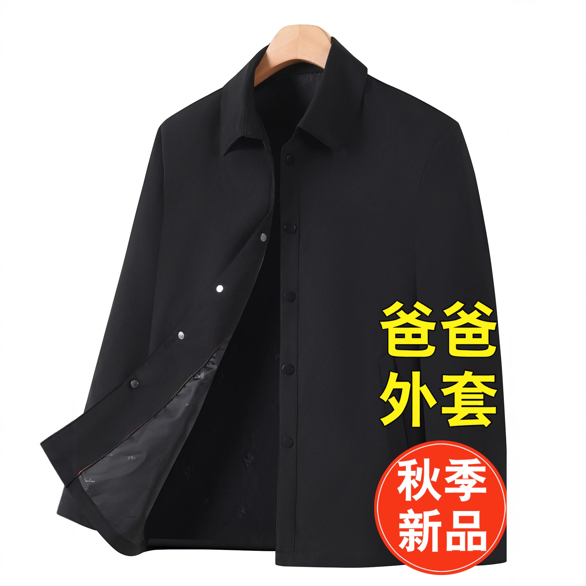 老年人外套男款宽松爷爷80老人衣服春秋款爸爸秋装摁扣夹克上衣男