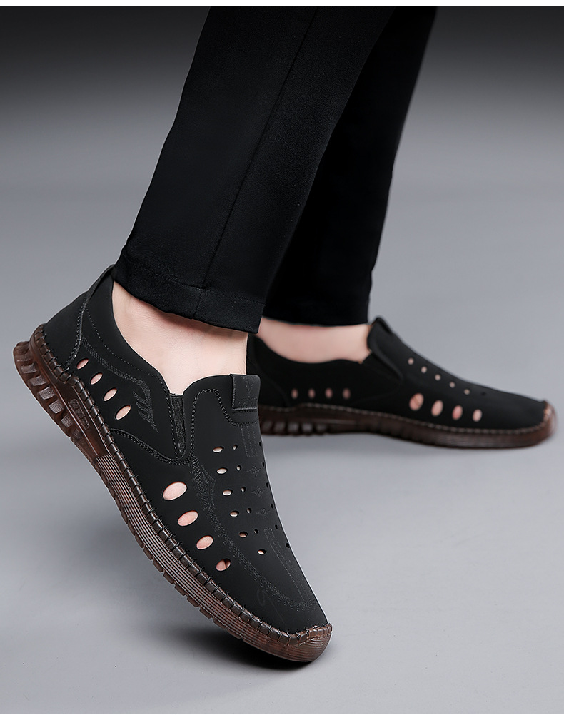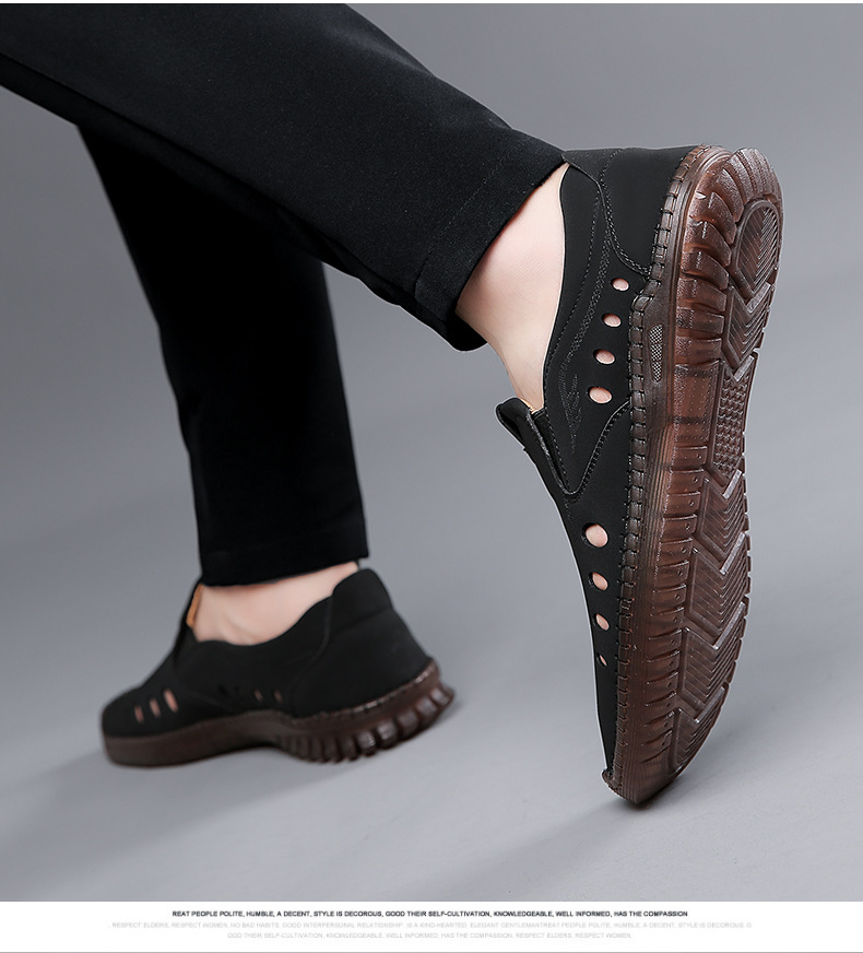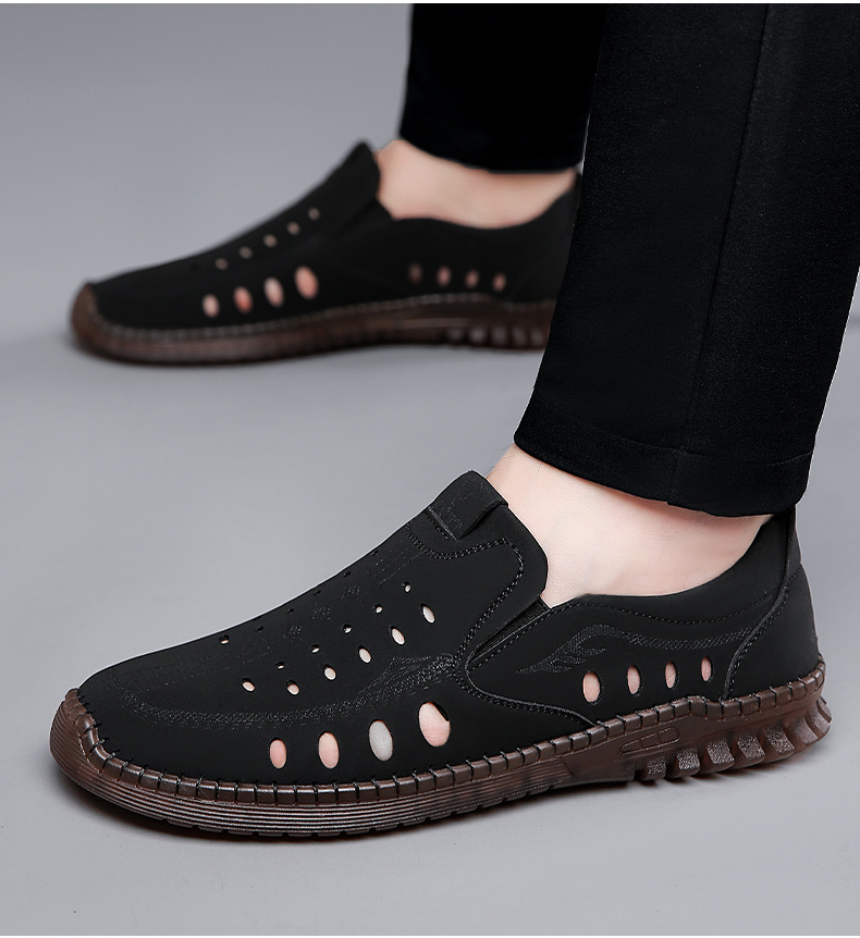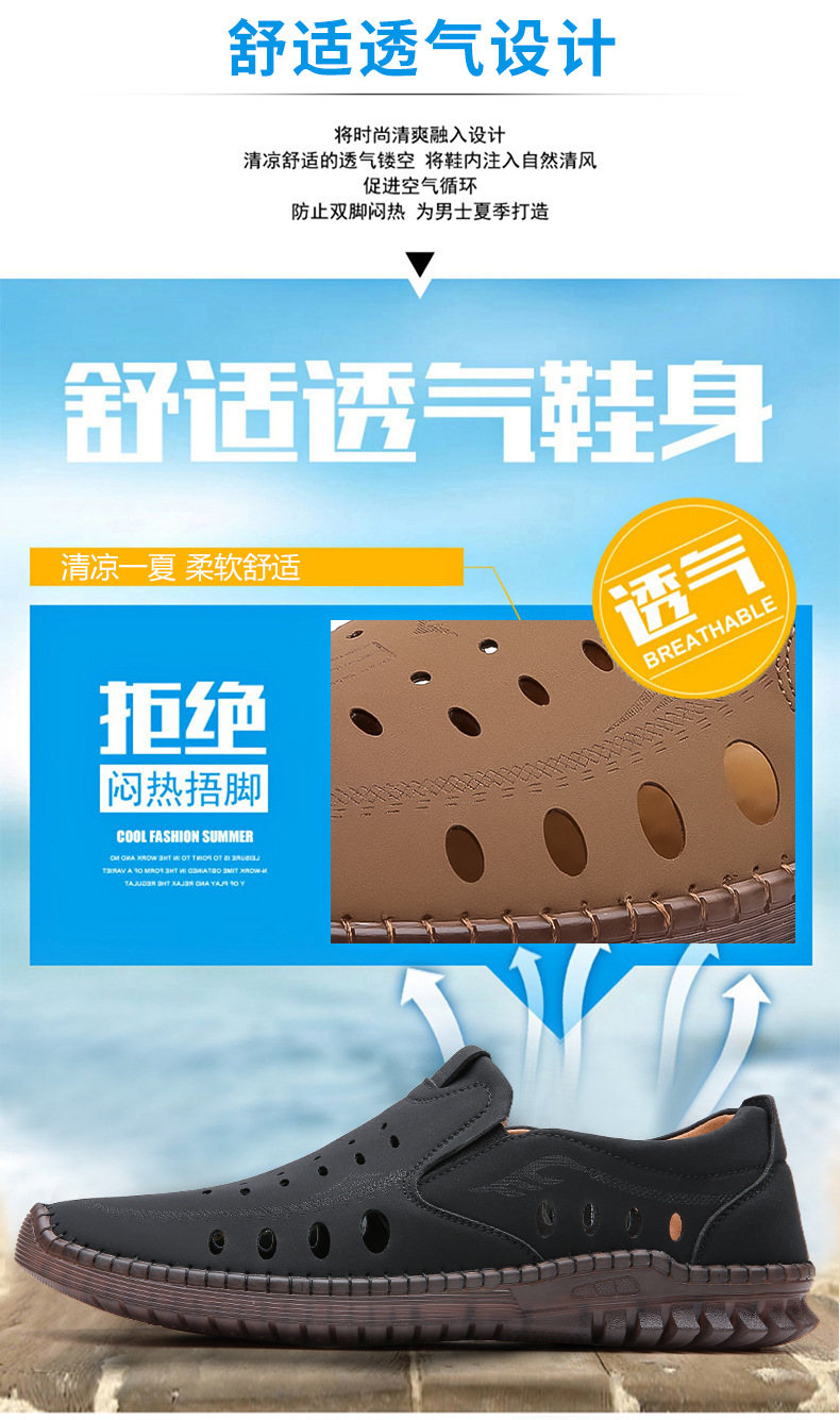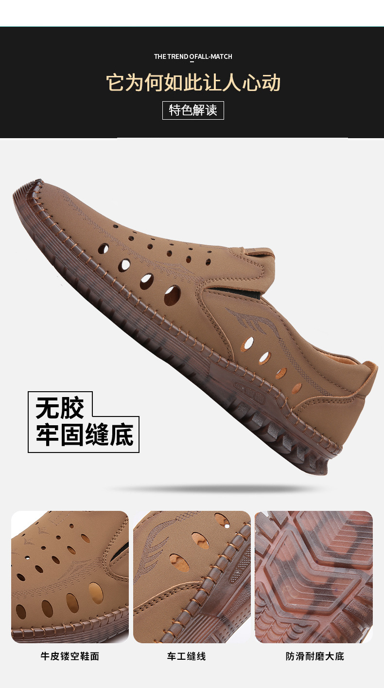 男性カジュアル靴夏の新型透かし彫り滑り止め通気性牛筋底皮サンダル