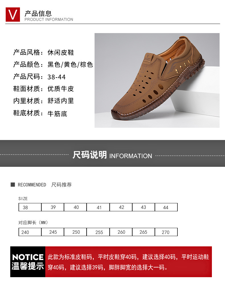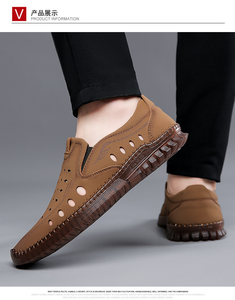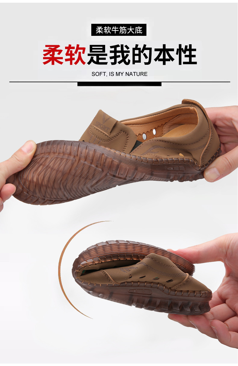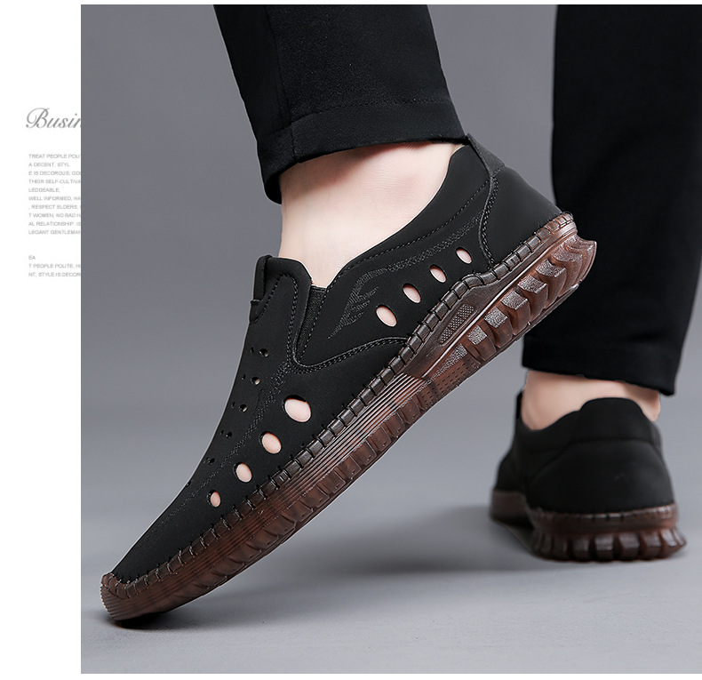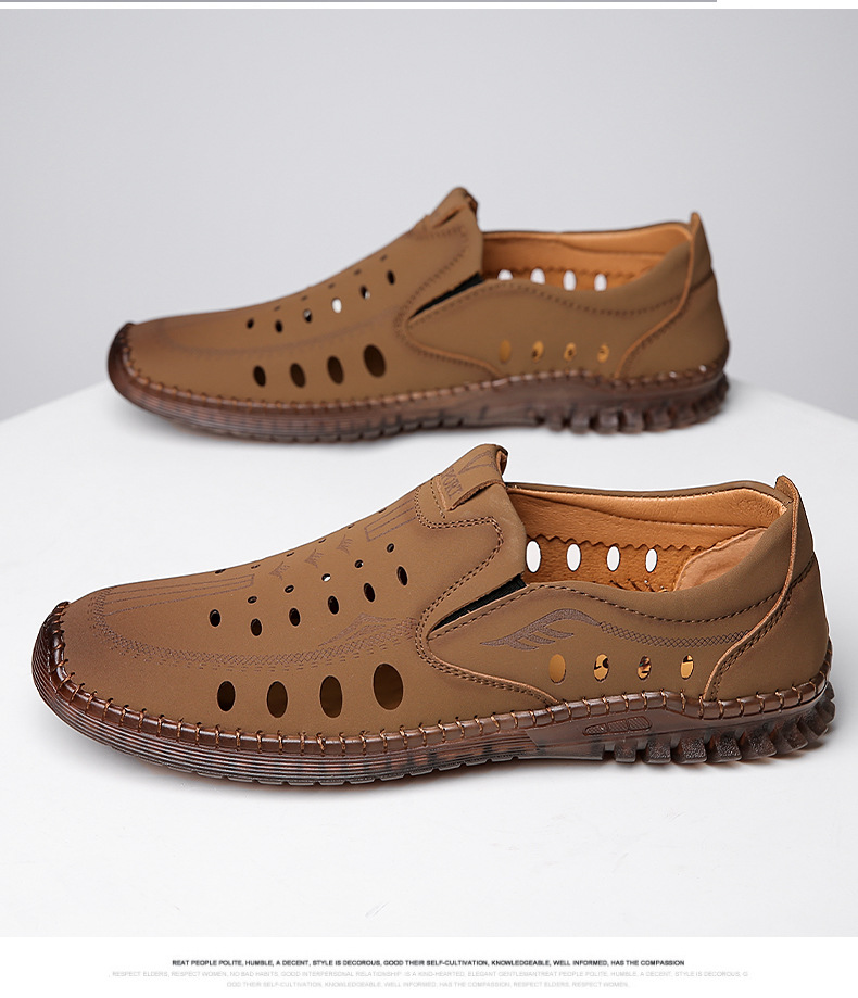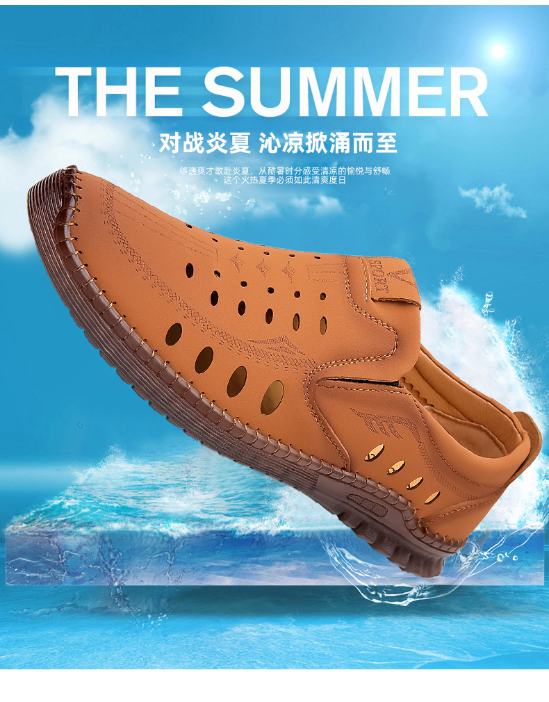 男性カジュアル靴夏の新型透かし彫り滑り止め通気性牛筋底皮サンダル