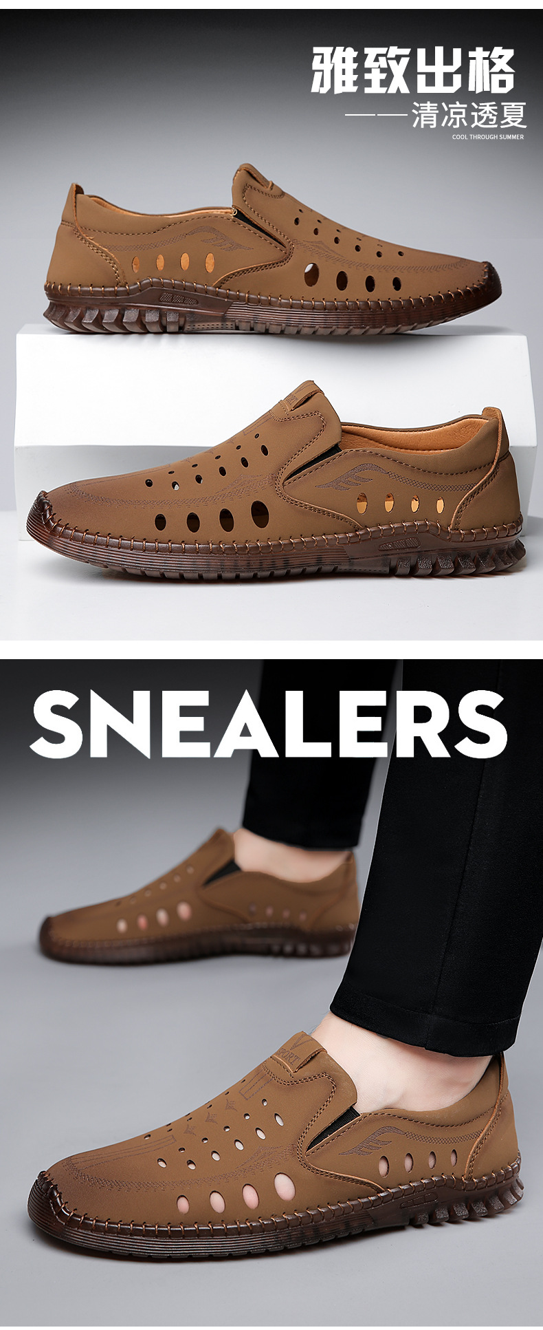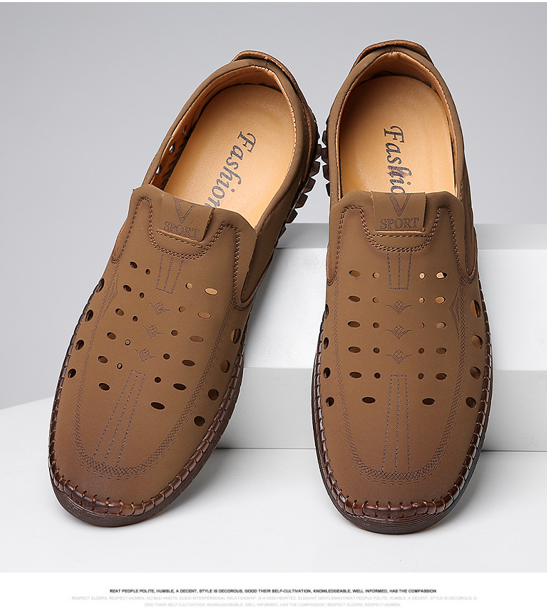 2025 春と秋のメンズシューズスリッポンビジネス第一層牛革メンズ多用途通気性カジュアルレザーシューズドライビングシューズ 8823