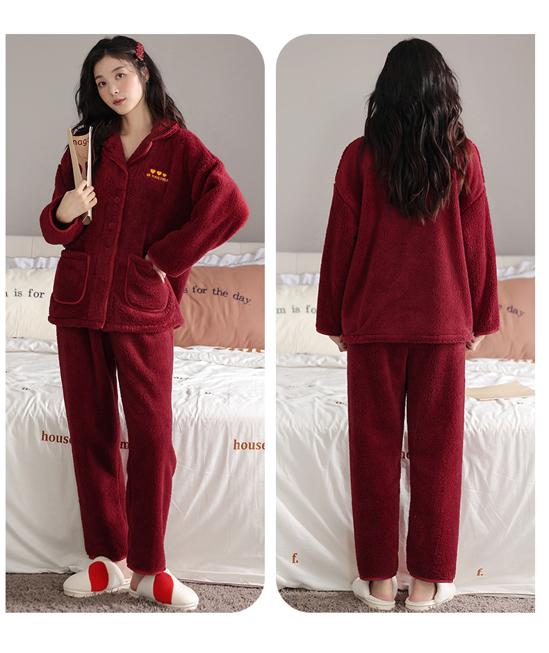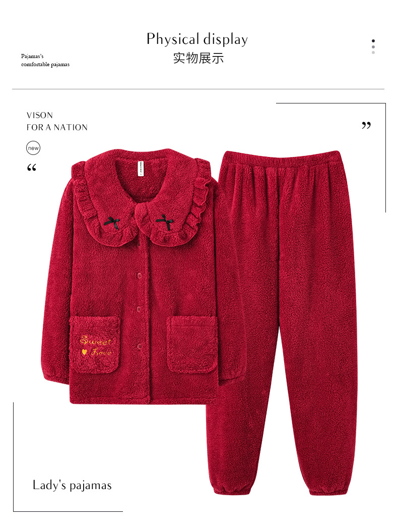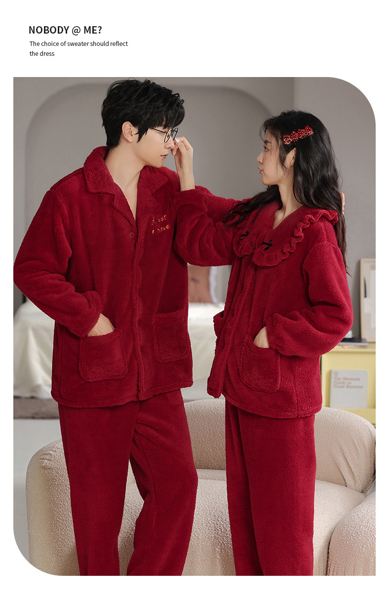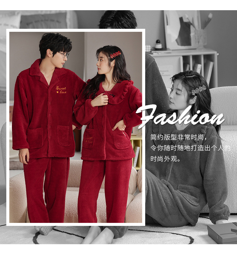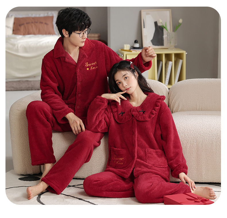 フランネルパジャマ女性冬の新しい赤い新婚のお祝い風サンゴのベルベット保温結婚家庭服セット男性