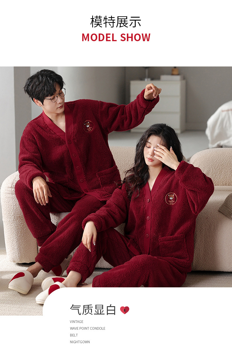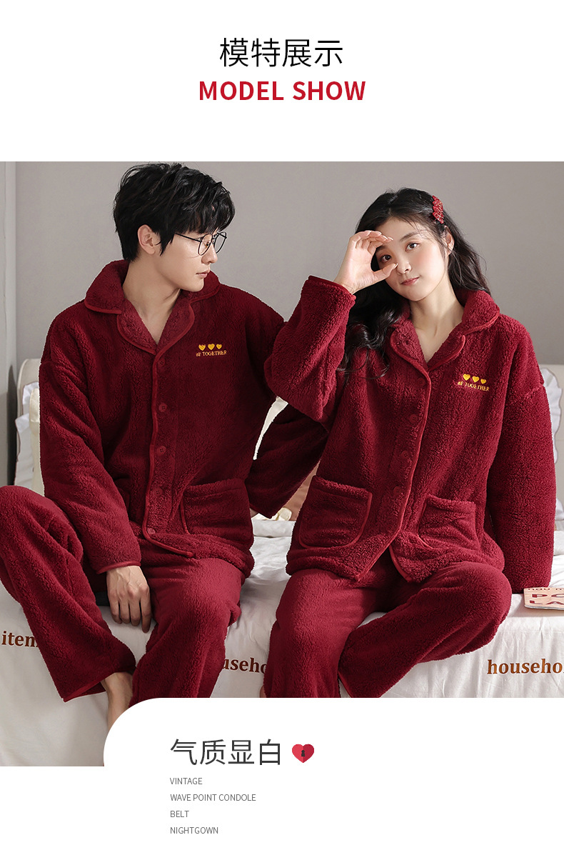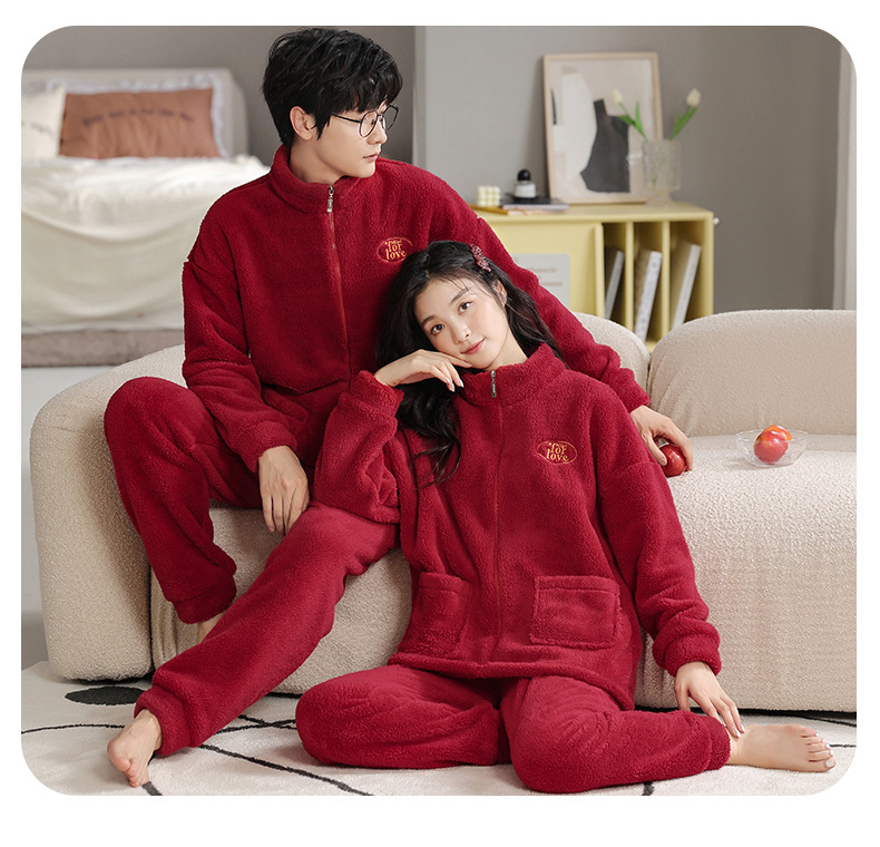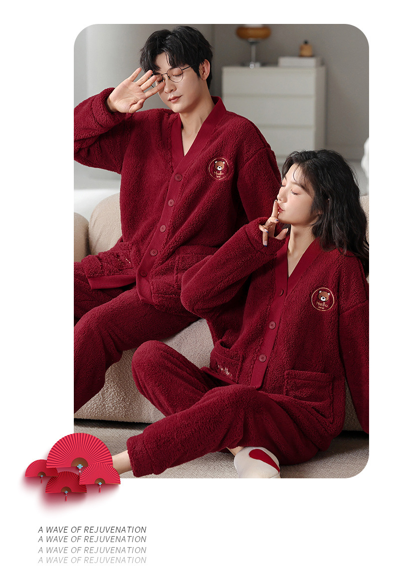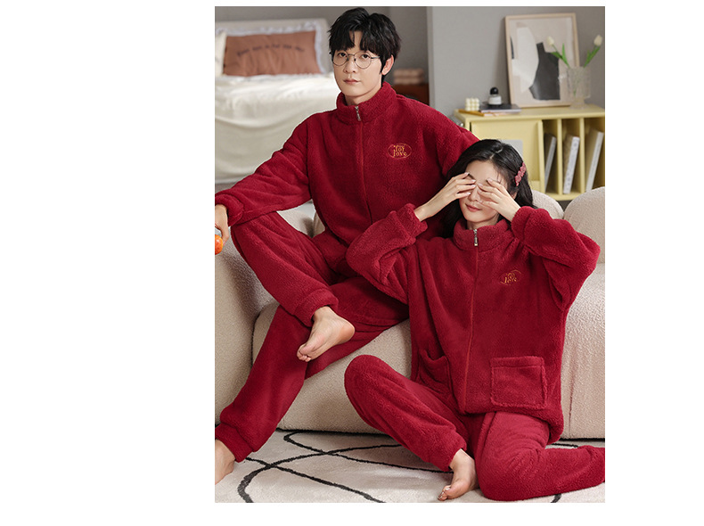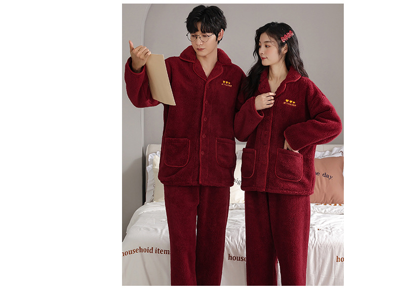 カップルのパジャマサンゴのベルベットは冬にベルベットの赤い本命年結婚保温家庭服フランネルのセットを厚くした
