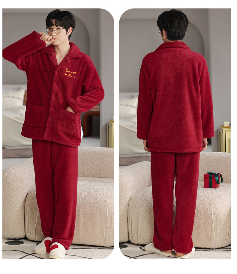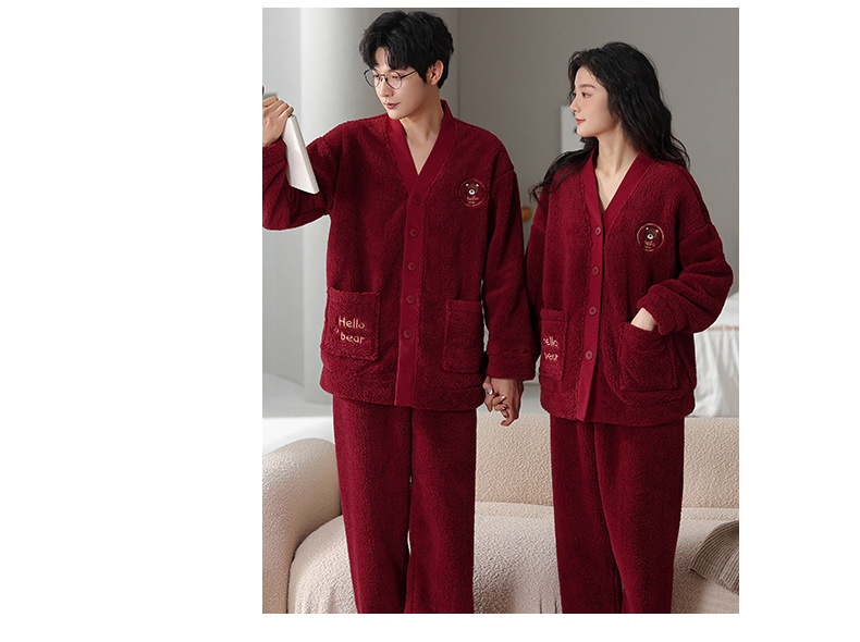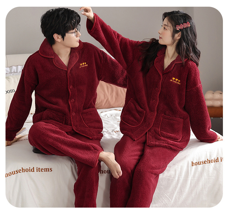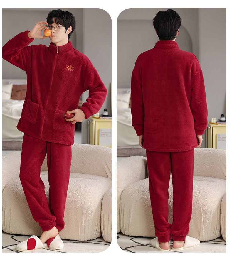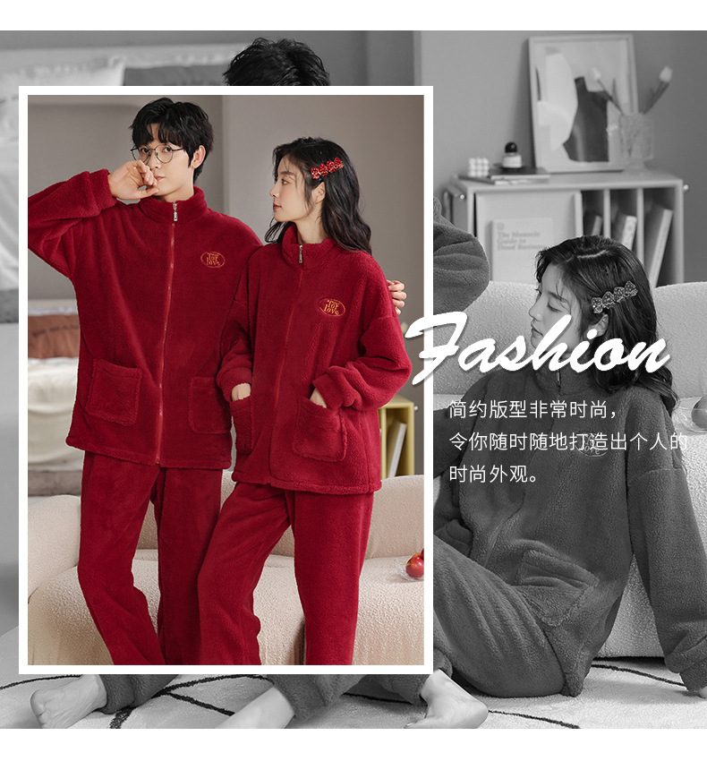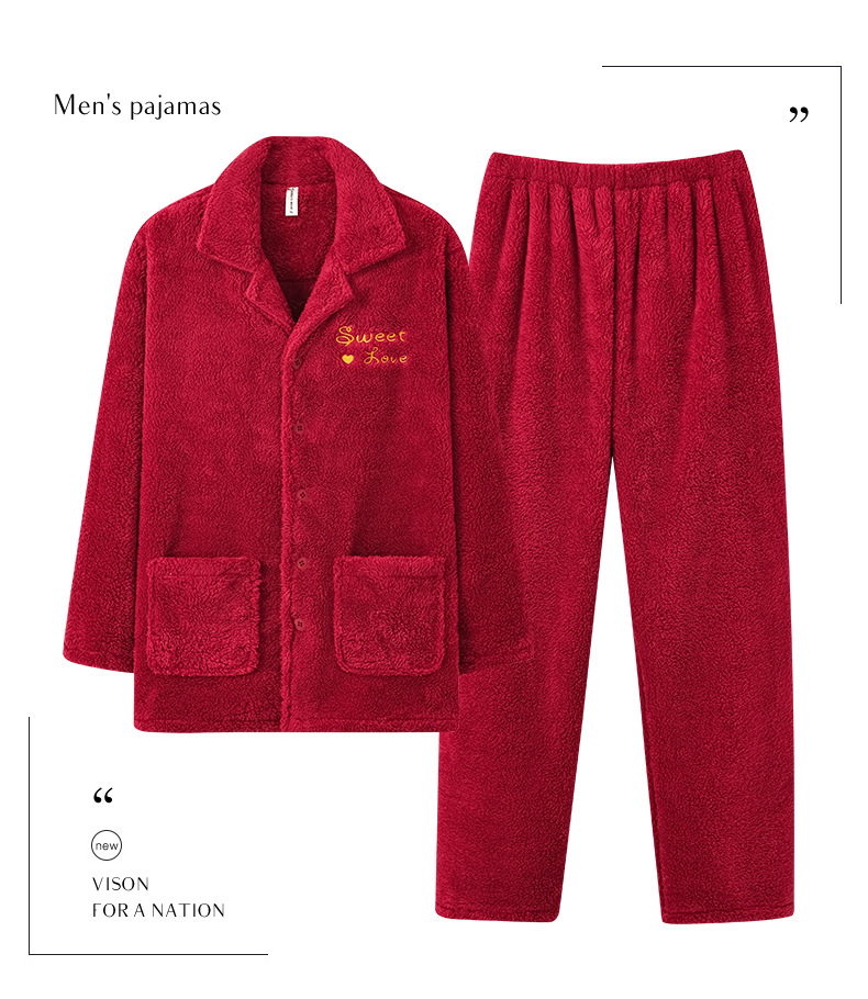 カップルのパジャマサンゴのベルベットは冬にベルベットの赤い本命年結婚保温家庭服フランネルのセットを厚くした