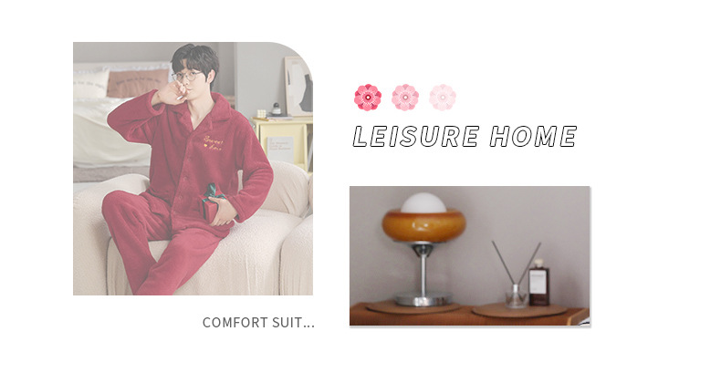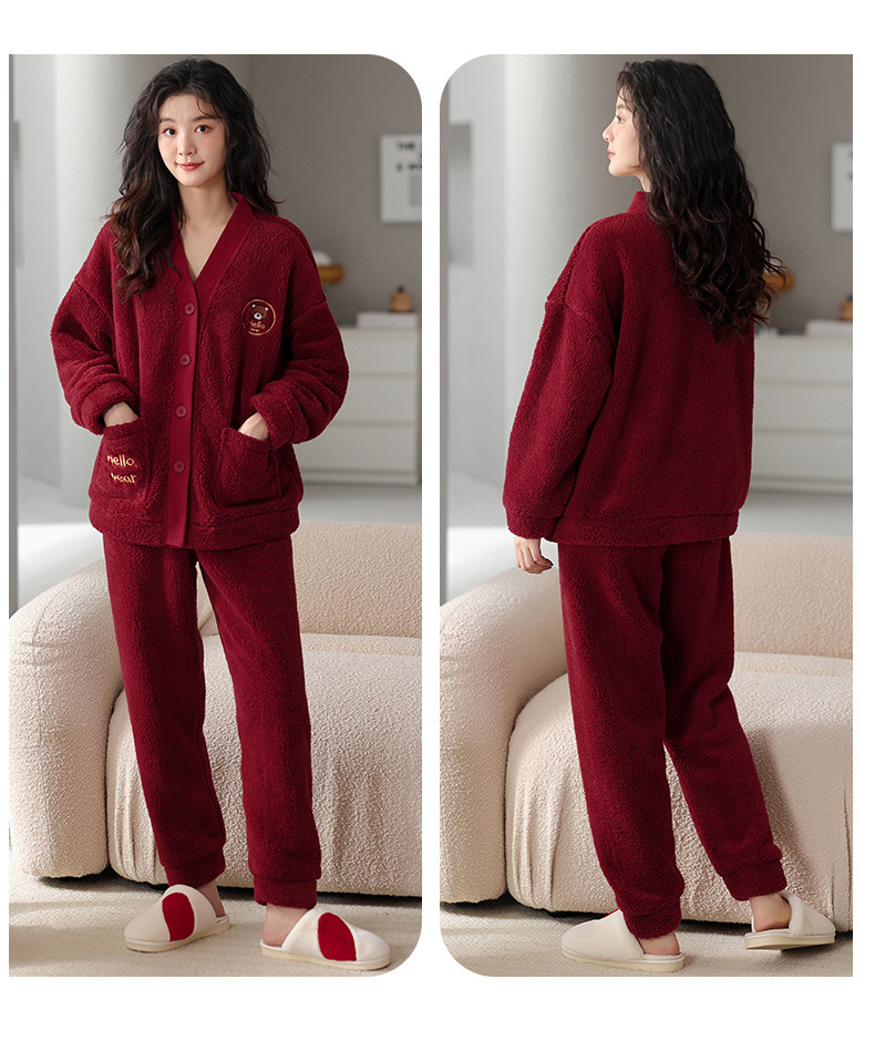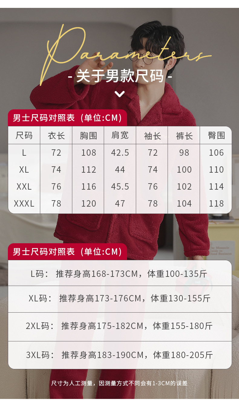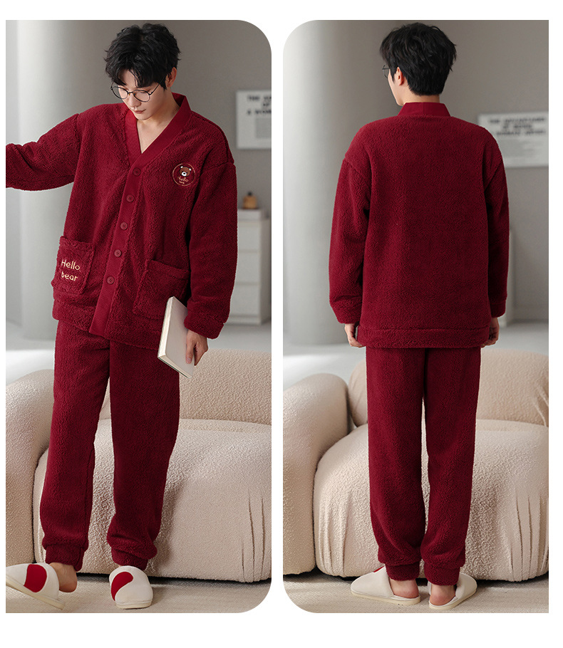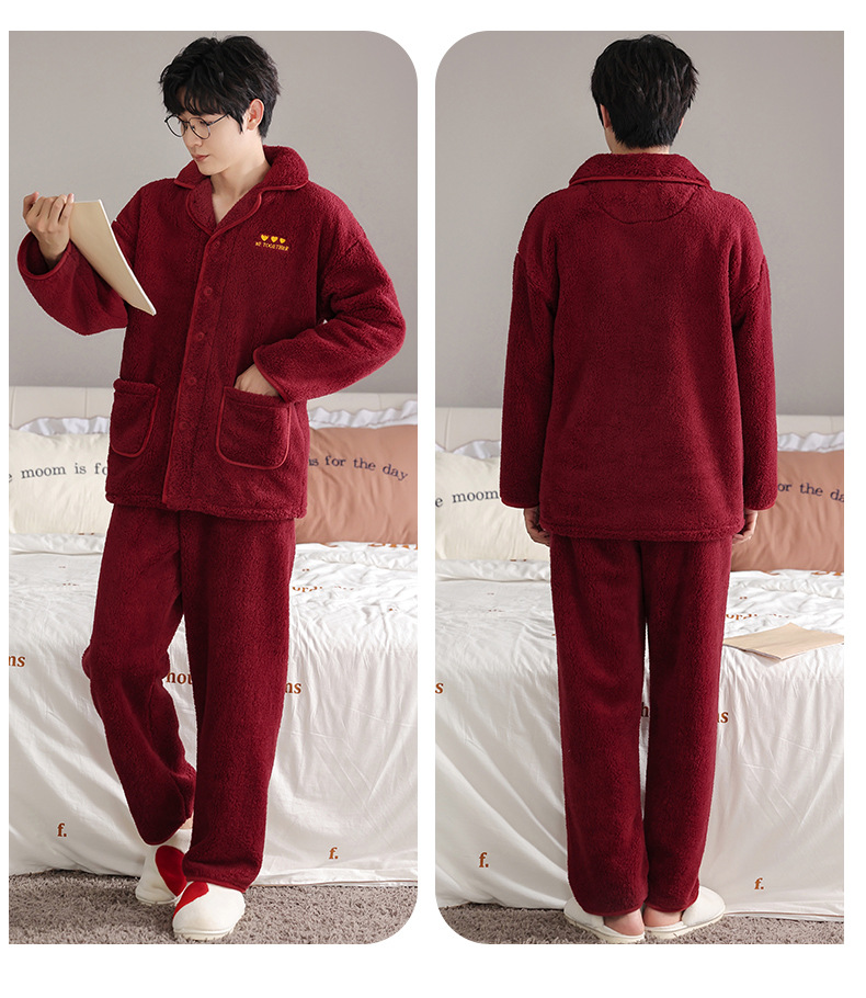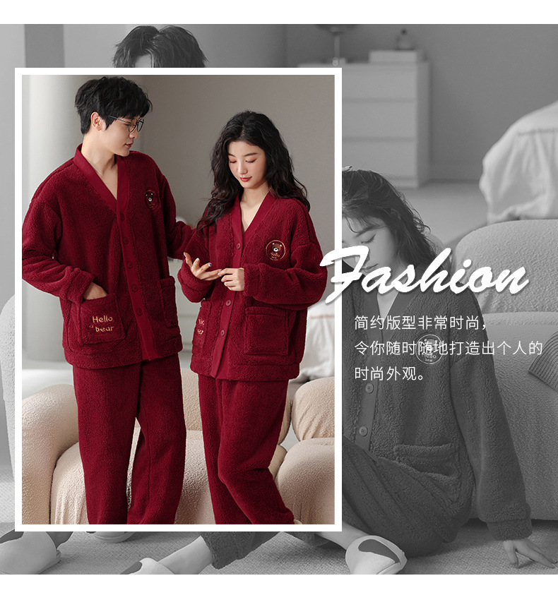 カップルのパジャマサンゴのベルベットは冬にベルベットの赤い本命年結婚保温家庭服フランネルのセットを厚くした
