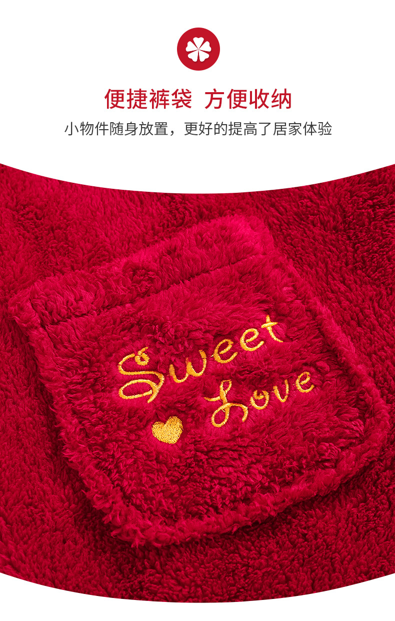 睡衣结婚新婚情侣套装冬季珊瑚绒喜庆婚庆红法兰绒加厚保暖家居服