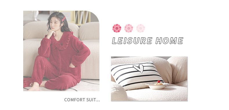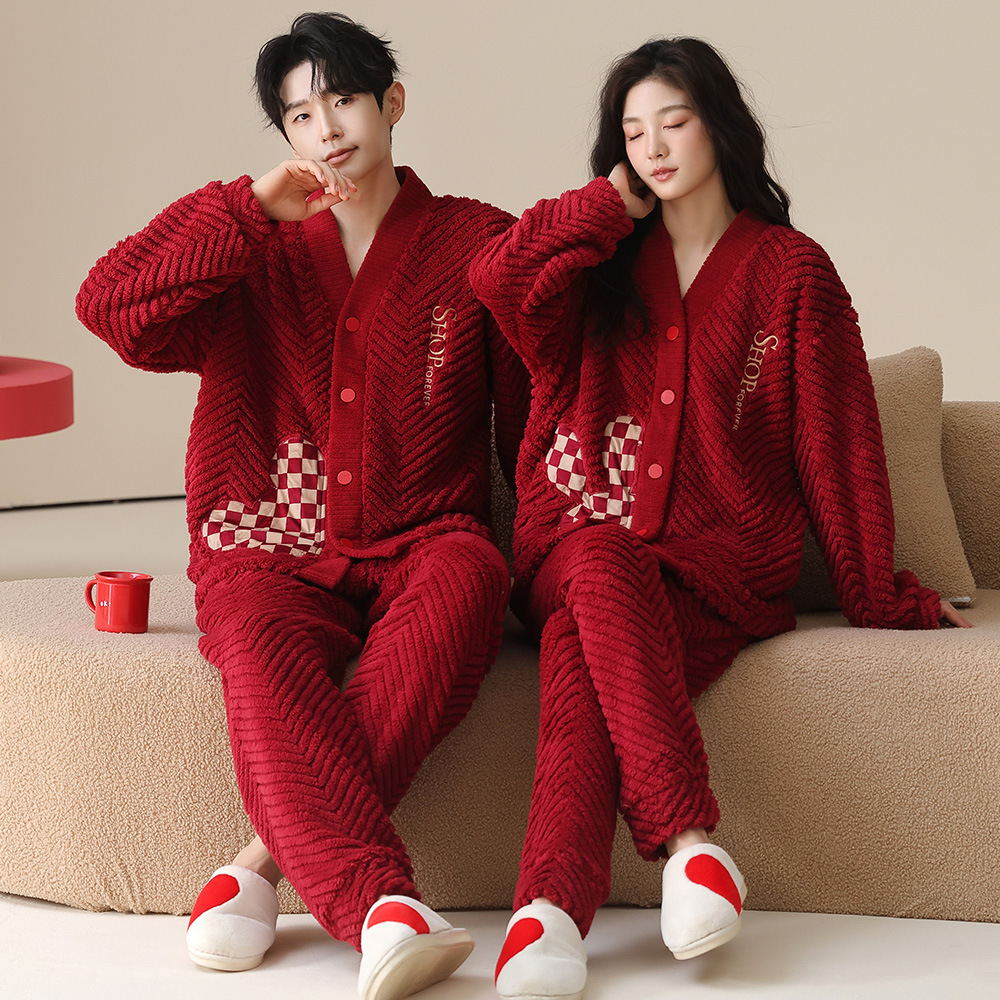 パジャマカップル服冬のサンゴのベルベットの厚いベルベットの赤い結婚新婚フランネルの家庭服セット