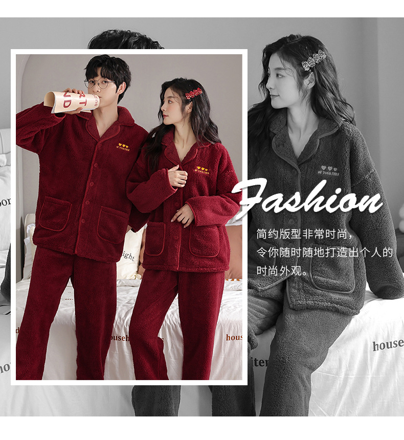 情侣睡衣女加绒新款珊瑚绒秋冬季套装男士法兰绒保暖大红色家居服